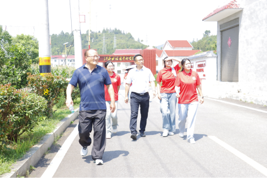 7月5日上午,江西工程學(xué)院黨委副書記、校長(zhǎng)劉新躍一行赴萍鄉(xiāng)市蓮花縣坊樓鎮(zhèn)沿背村——甘祖昌將軍故居,親切看望慰問(wèn)學(xué)校“智教全珍班社會(huì)實(shí)踐隊(duì)”青年師生,實(shí)地調(diào)研暑期“三下鄉(xiāng)”活動(dòng)開展情況。黨委委員、宣傳部部長(zhǎng)于永清,校辦主任黃宏麗,教育與健康管理學(xué)院黨總支書記劉永東陪同調(diào)研。