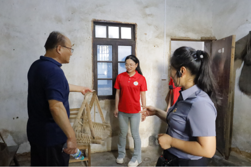 隨后,劉新躍一行來(lái)到甘祖昌故居,其“雙色墻”尤為醒目,1962年甘祖昌將軍為支持村里生產(chǎn)隊(duì)建設(shè)倉(cāng)庫(kù),將自家建房材料悉數(shù)送出,致新房左半邊先行落成,右半邊直至1965年才完工。故居內(nèi)保留著窯洞式風(fēng)格,嵌入式墻柜兼具儲(chǔ)物功能,盡頭房間陳列著鋤頭、石磨、蓑衣等舊農(nóng)具,件件皆是將軍返鄉(xiāng)務(wù)農(nóng)、建設(shè)家鄉(xiāng)的歷史見證。