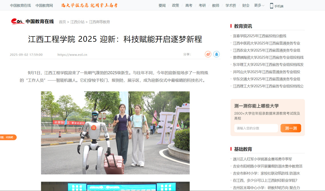 9月1日,江西工程學院迎來了一批朝氣蓬勃的2025級新生。與往年不同,今年的迎新現(xiàn)場多了一批特殊的“工作人員”——智能機器人。它們穿梭于校門、報到處、展示區(qū),成為迎新儀式中最吸睛的科技名片。