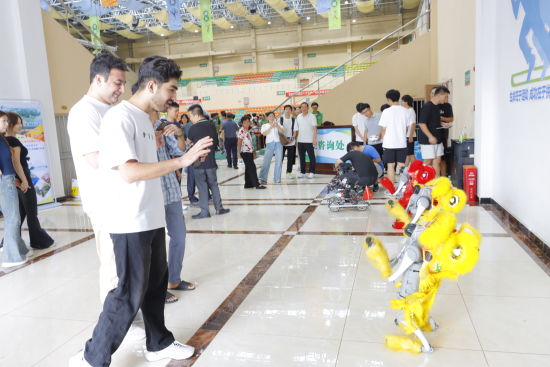 此外,校園門口的四足機器狗伴隨音樂舞動,憨態(tài)可掬的模樣讓新生紛紛駐足拍照,緩解了初入校園的緊張,真正實現(xiàn)“人機互動?燃動青春”。