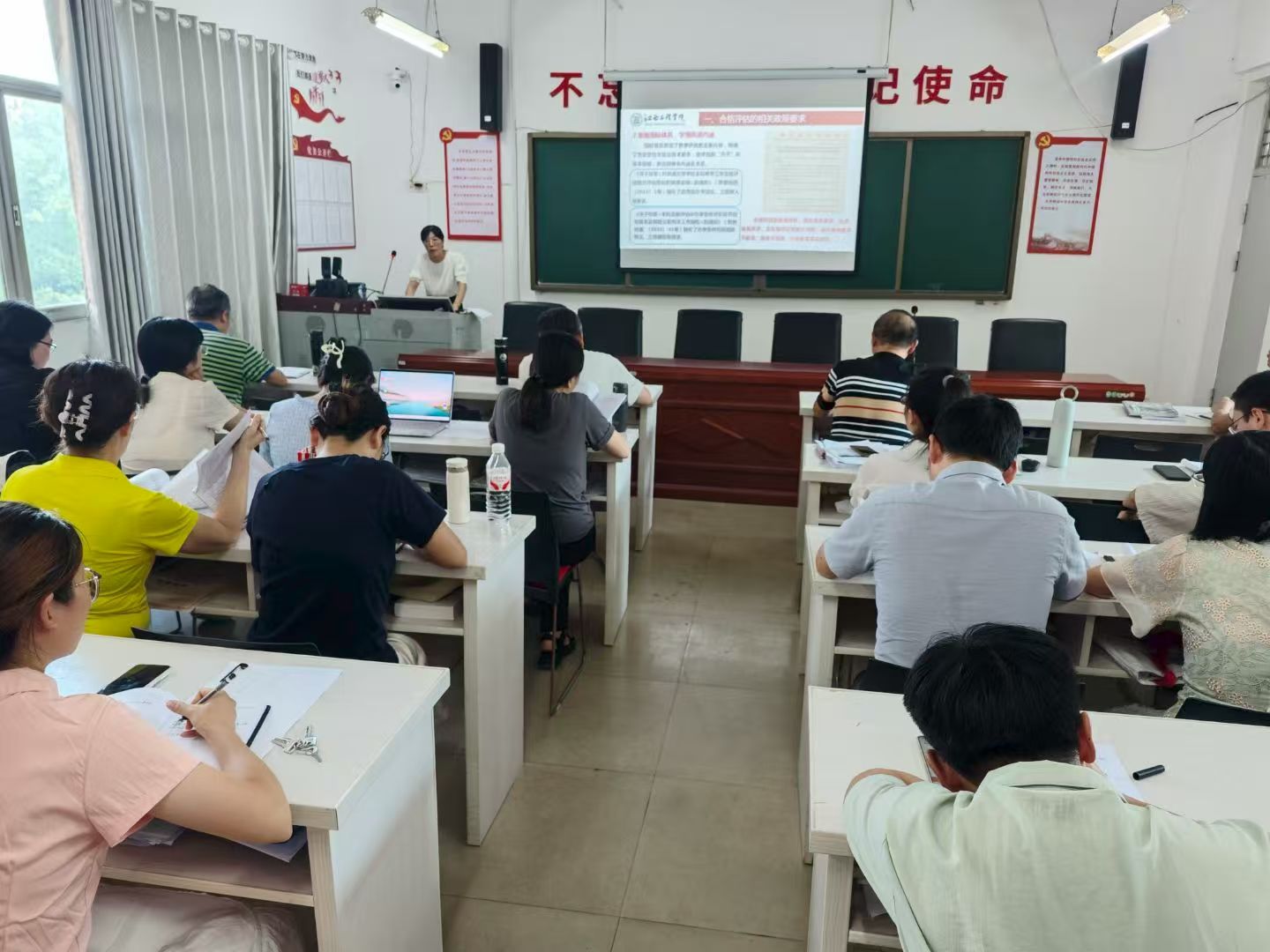討論環(huán)節(jié),王勇傳達(dá)學(xué)校本科教學(xué)工作合格評(píng)估重點(diǎn)要求,解讀教育思想大討論核心內(nèi)容,強(qiáng)調(diào)其對(duì)學(xué)院改革與質(zhì)量提升的關(guān)鍵意義。他帶領(lǐng)教師學(xué)習(xí)評(píng)估應(yīng)知應(yīng)會(huì)知識(shí),匯報(bào)學(xué)院評(píng)估進(jìn)展、現(xiàn)存問(wèn)題及后續(xù)計(jì)劃,要求教師樹立“人人參與評(píng)估、人人都是評(píng)估主體”理念,遵循“以評(píng)促建”等原則,壓實(shí)責(zé)任、落實(shí)到人。同時(shí),他提出三點(diǎn)要求:明確責(zé)任分工解決“誰(shuí)來(lái)干”,細(xì)化任務(wù)清單解決“干什么”,狠抓執(zhí)行落地解決“怎么干”,號(hào)召眾人凝心聚力助力評(píng)估。