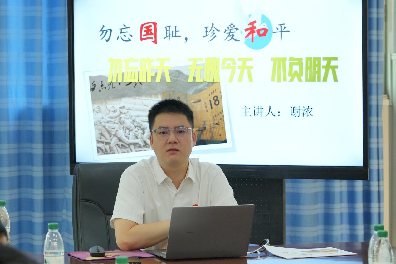 招生直屬黨支部書記謝濃以《勿忘國(guó)恥 珍愛和平》為題,帶領(lǐng)大家回顧了九一八事變的歷史和時(shí)代背景,強(qiáng)調(diào)了銘記九一八事變歷史的重要性,指出這是對(duì)黨員進(jìn)行愛國(guó)主義教育和黨性修養(yǎng)提升的重要契機(jī)。謝濃呼吁全體黨員要時(shí)刻保持清醒頭腦,繼承和發(fā)揚(yáng)革命先烈不怕犧牲、勇于斗爭(zhēng)的精神,將這份歷史記憶轉(zhuǎn)化為推動(dòng)科研、服務(wù)人民的強(qiáng)大動(dòng)力,為實(shí)現(xiàn)中華民族偉大復(fù)興的中國(guó)夢(mèng)不懈奮斗。