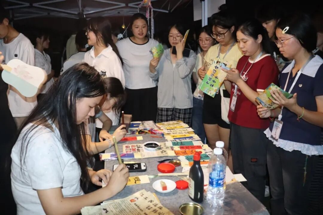 本次活動以 “游園集章” 為核心玩法,同學(xué)們?nèi)雸鰰r領(lǐng)取的集章卡,成了開啟快樂闖關(guān)的 “鑰匙”。七大社團(tuán)精心設(shè)計的互動攤位前,處處可見排隊參與的身影,大家?guī)е诖c熱情,在不同游戲中收獲樂趣與印章:有的在詩詞對決中展現(xiàn)文化儲備,用經(jīng)典詩句傳遞中秋意蘊(yùn);有的在反應(yīng)力挑戰(zhàn)中歡笑不斷,用敏捷動作贏取通關(guān)認(rèn)可;有的在傳統(tǒng)游戲中體驗古人雅趣,在投擲與套圈間感受競技快樂;還有的拿起筆墨書寫祝福,在燈謎解謎中探索巧思,在月餅盲品中喚醒味蕾記憶。每成功通關(guān)一個項目,集章卡上便多一枚專屬印章,積累到一定數(shù)量后,還能到總服務(wù)臺兌換紙巾、盲盒、零食、洗衣液、定制文創(chuàng)等精美禮品,讓參與感與獲得感雙雙拉滿。