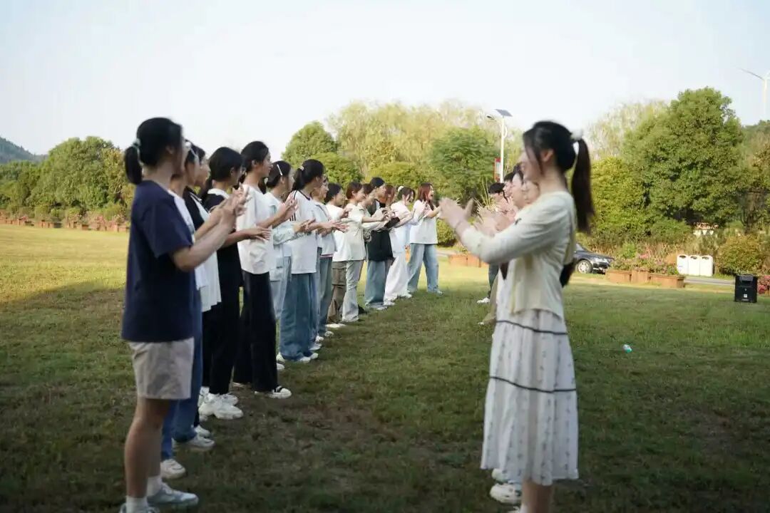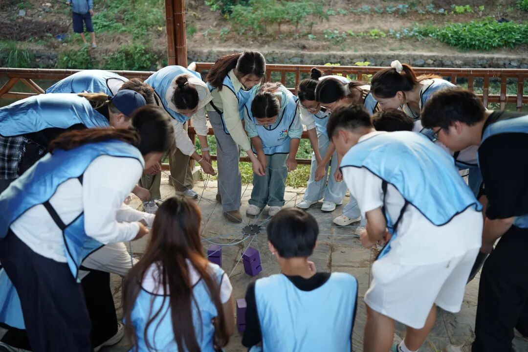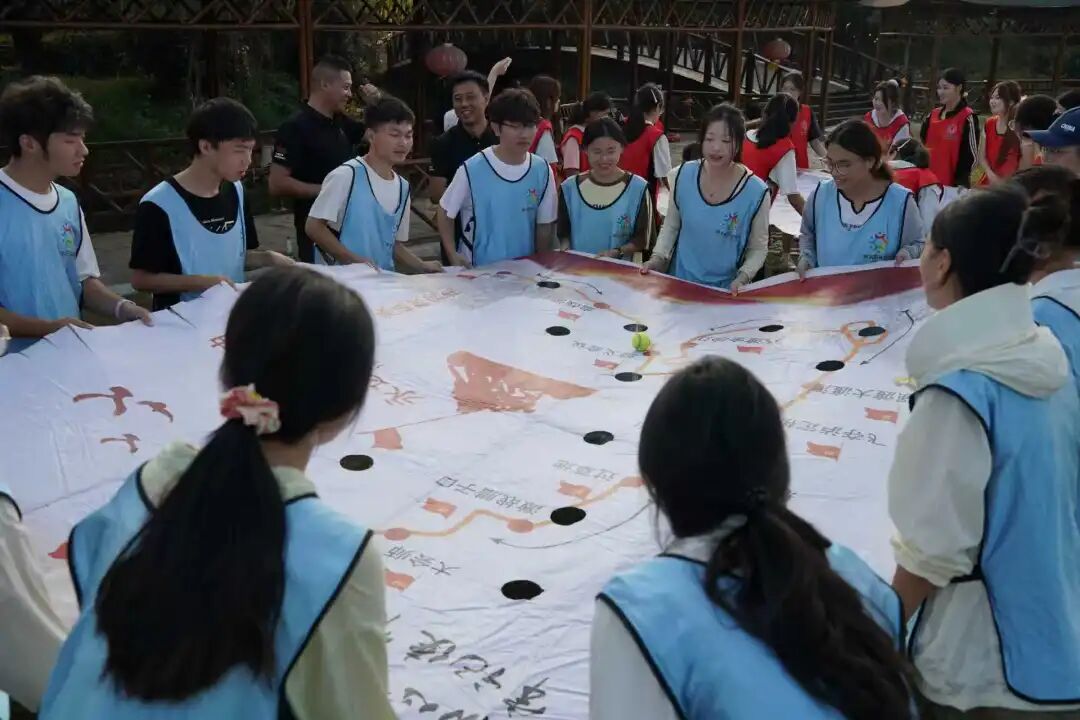 接著,來到紅色拓展環(huán)節(jié),“合力筑塔”模擬“支部建在連上”,全隊拉繩協(xié)作搭建9層“堡壘”,讓同學(xué)們體悟組織強(qiáng)基的力量;“重走長征路”在巨型地圖運球闖關(guān)于黨史答題中,將智慧與協(xié)作轉(zhuǎn)化為前進(jìn)動力;“齊頭并進(jìn)”的踏板鞋接力,則以“步調(diào)一致”的實踐詮釋團(tuán)結(jié)制勝的真理。