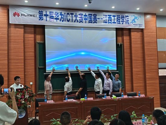 隨后,到場(chǎng)領(lǐng)導(dǎo)與嘉賓共同上臺(tái),啟動(dòng)第十屆華為ICT大賽中國(guó)賽路演江西工程學(xué)院站活動(dòng),正式拉開新余地區(qū)賽事參與的序幕。