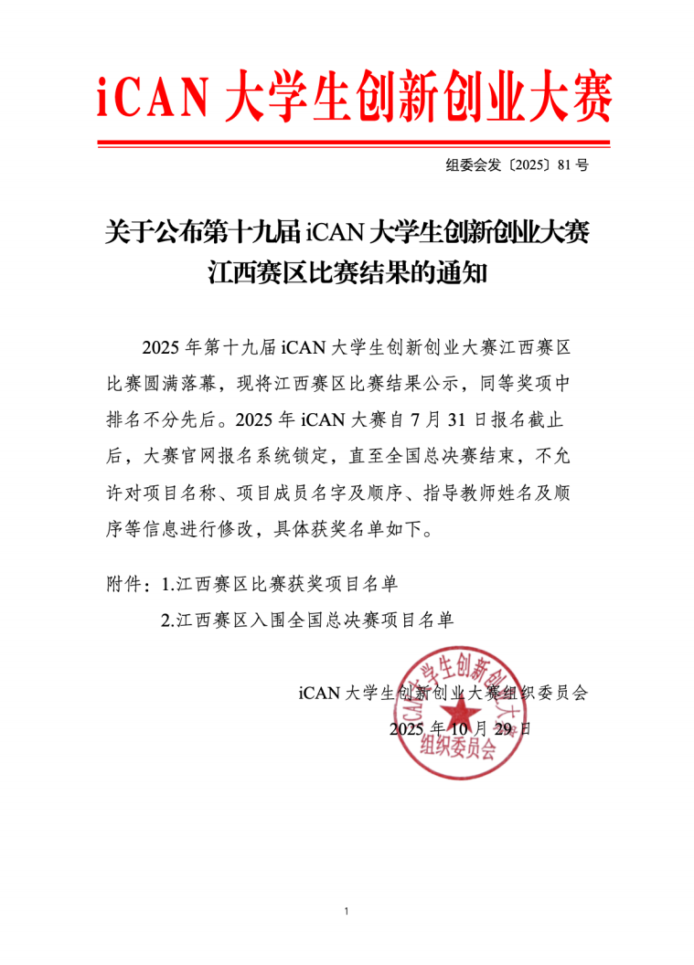 近日,2025年第十九屆iCAN大學(xué)生創(chuàng)新創(chuàng)業(yè)大賽江西賽區(qū)選拔賽在南昌大學(xué)循環(huán)經(jīng)濟(jì)產(chǎn)業(yè)豐城研究院圓滿落幕。本次大賽由江西省高等教育學(xué)會(huì)主辦,宜春豐城高新技術(shù)產(chǎn)業(yè)開(kāi)發(fā)區(qū)管委會(huì)、南昌大學(xué)循環(huán)經(jīng)濟(jì)產(chǎn)業(yè)豐城研究院共同承辦。