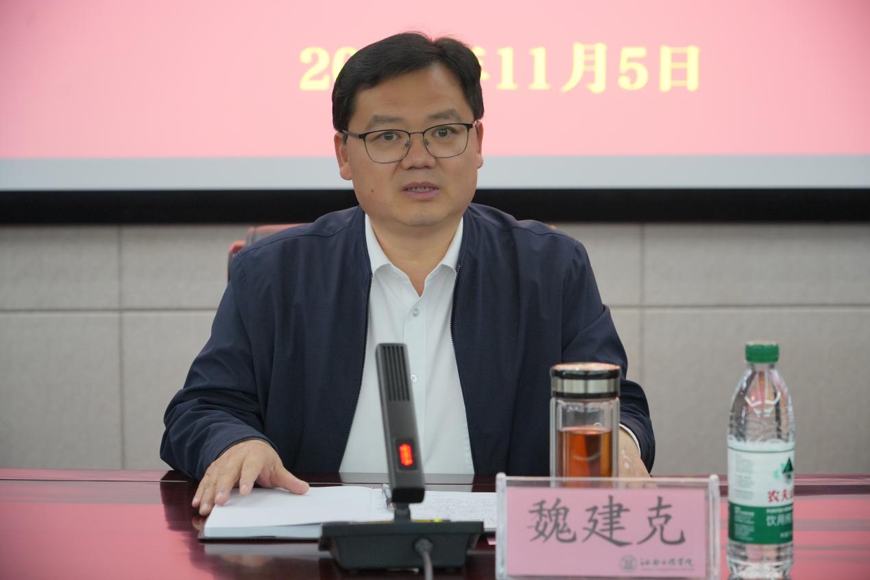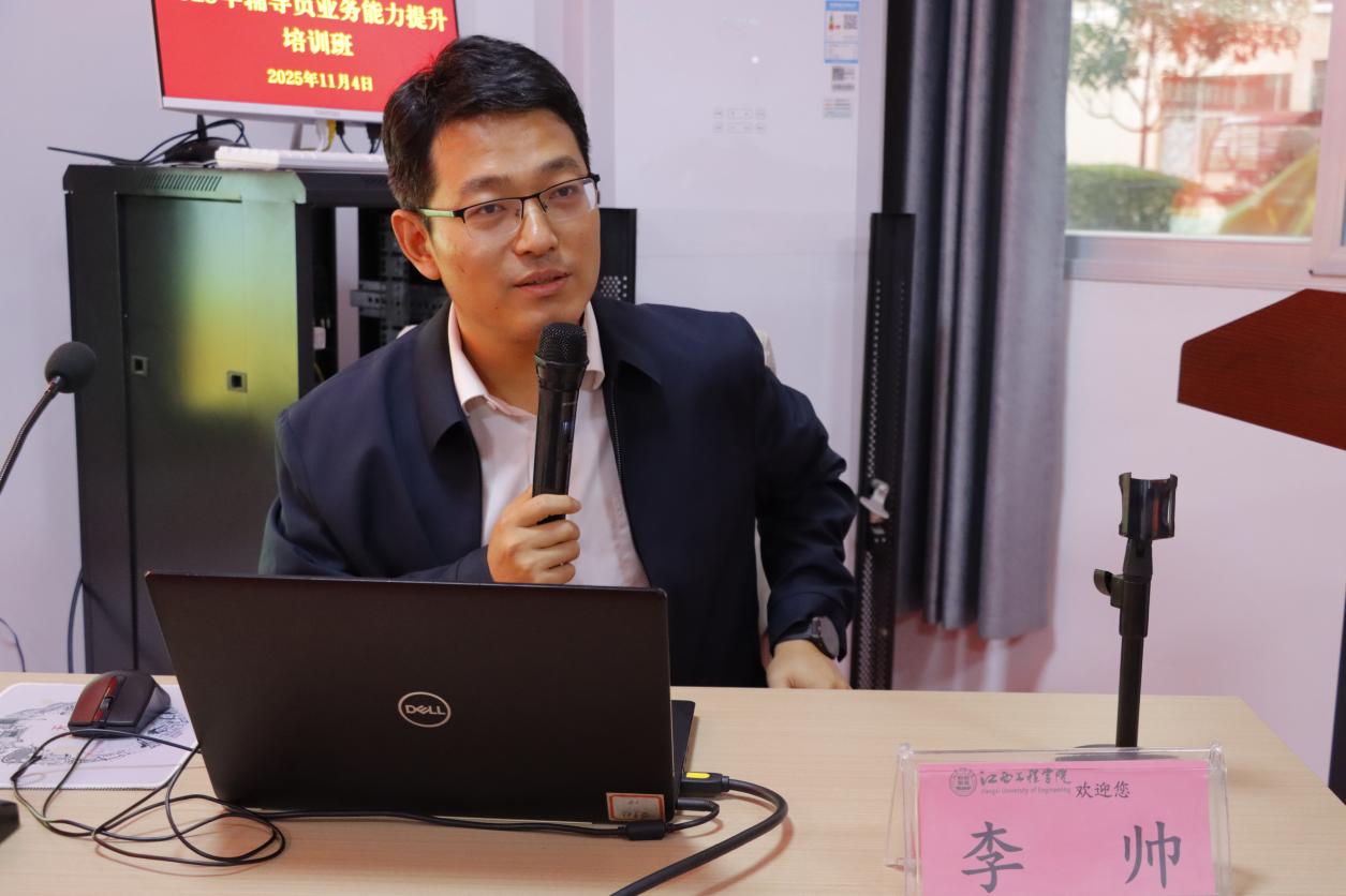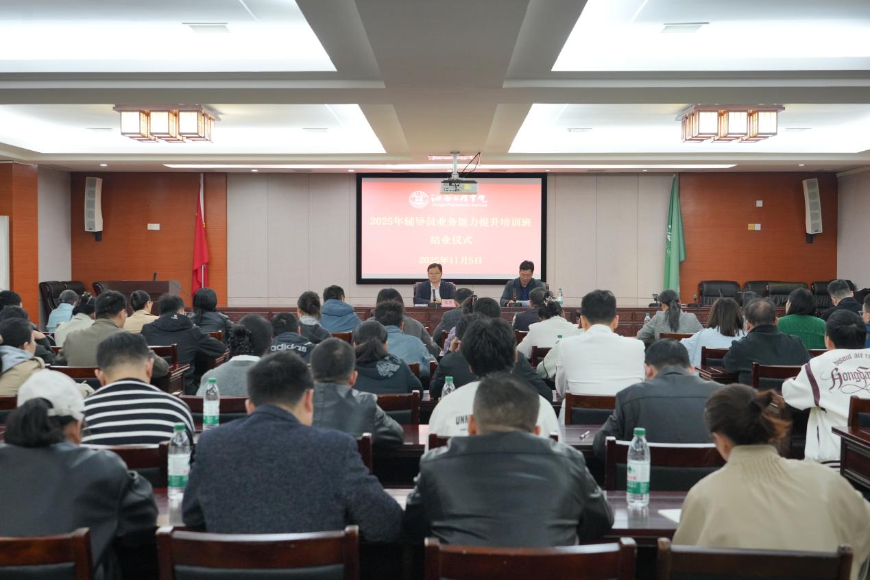 為深入學(xué)習(xí)貫徹黨的二十屆四中全會(huì)精神和習(xí)近平總書(shū)記關(guān)于教育的重要論述,全面落實(shí)全會(huì)提出的“統(tǒng)籌教育強(qiáng)國(guó)建設(shè)、強(qiáng)化思政引領(lǐng)力”相關(guān)要求,進(jìn)一步加強(qiáng)學(xué)校輔導(dǎo)員隊(duì)伍專業(yè)化職業(yè)化建設(shè),著力提升輔導(dǎo)員理論素養(yǎng)、職業(yè)能力和育人水平,11月5日,學(xué)校在天工校區(qū)行政樓三樓會(huì)議室召開(kāi)2025年輔導(dǎo)員業(yè)務(wù)能力提升培訓(xùn)班結(jié)業(yè)式。校黨委書(shū)記、督導(dǎo)專員魏建克出席結(jié)業(yè)式并講話,黨委副書(shū)記、副校長(zhǎng)馮赟主持結(jié)業(yè)式,黨委學(xué)生工作部相關(guān)負(fù)責(zé)人、各學(xué)院黨組織書(shū)記及培訓(xùn)班60余名學(xué)員參加本次活動(dòng)。