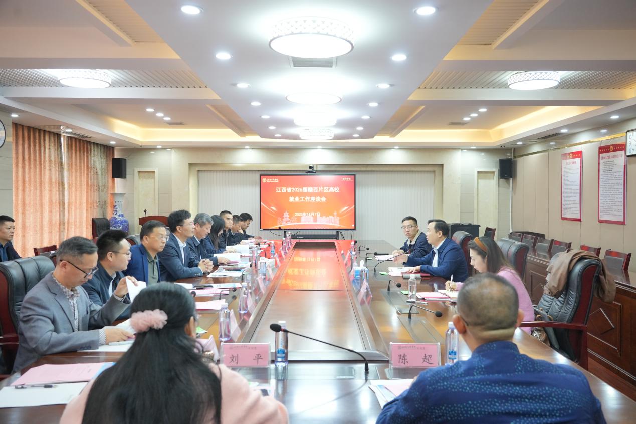 招聘會結(jié)束后,2026屆贛西片區(qū)高校就業(yè)工作座談會在江西工程學(xué)院天工校區(qū)行政樓七樓會議室召開。片區(qū)內(nèi)12所高校的就業(yè)工作負責(zé)人,詳細介紹了本校2026屆畢業(yè)生規(guī)模、專業(yè)結(jié)構(gòu)、就業(yè)意向等情況,客觀分析了當(dāng)前高校就業(yè)工作面臨的困難與問題,并就省教育廳推進高校畢業(yè)生就業(yè)工作,提出了諸多具有可操作性的寶貴建議。鄢彬華就扎實有力推進大學(xué)生就業(yè)創(chuàng)業(yè)工作提出四點意見:一要共享片區(qū)優(yōu)秀就業(yè)崗位資源,多舉辦小而精、專而優(yōu)的專場招聘會;二要共推片區(qū)產(chǎn)教融合協(xié)同育人,著力拓寬畢業(yè)生就業(yè)渠道;三要共建就業(yè)聯(lián)動機制,構(gòu)建需求與培養(yǎng)對接的數(shù)據(jù)共享通道;四要持續(xù)優(yōu)化就業(yè)服務(wù),不斷提升就業(yè)指導(dǎo)的精準(zhǔn)度和實效性。