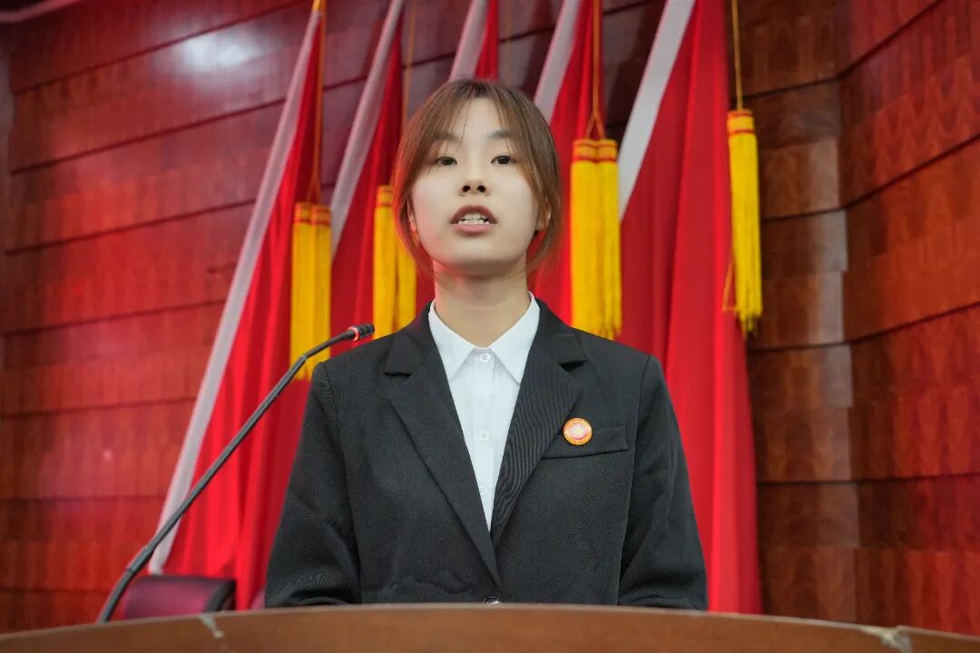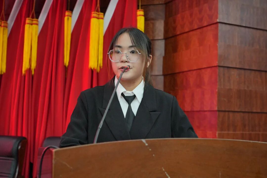 第十一期優(yōu)秀學員代表孫佳利分享培訓感悟與成長歷程,稱青馬工程是知識課堂更是實踐熔爐,讓她在學習與實踐中體會到青年責任與使命。她鼓勵學弟學妹珍惜機會,深耕理論、投身實踐,將個人理想融入國家大局,為強國建設、民族復興貢獻青春力量。