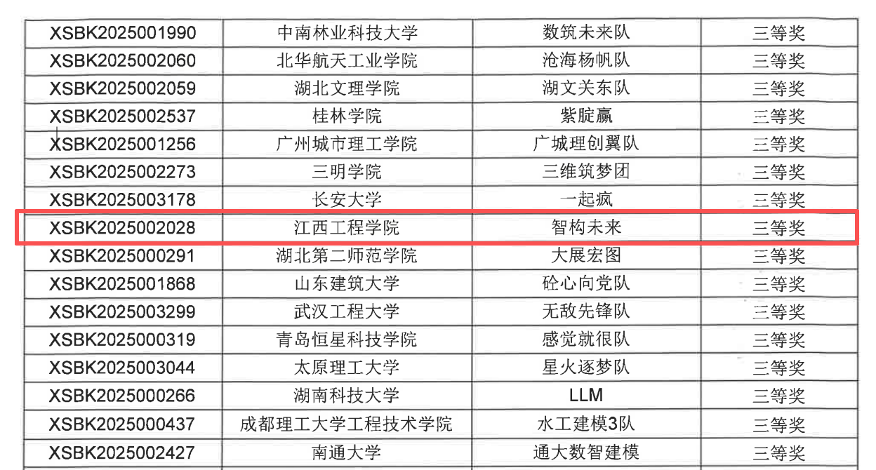 此次獲獎(jiǎng)既是學(xué)校在數(shù)字建筑領(lǐng)域?qū)W科競(jìng)賽的重大突破,也是江西工程學(xué)院智能制造與建造學(xué)院“工學(xué)主導(dǎo)、產(chǎn)教融合”辦學(xué)特色的生動(dòng)彰顯。下一步,學(xué)院將以此次獲獎(jiǎng)為契機(jī),深化“以賽促學(xué)、以賽促教、以賽促創(chuàng)”育人機(jī)制,持續(xù)完善數(shù)字建筑領(lǐng)域?qū)嵺`教學(xué)體系,搭建更高水平學(xué)科競(jìng)賽平臺(tái),鼓勵(lì)更多學(xué)子投身創(chuàng)新實(shí)踐,為建筑行業(yè)高質(zhì)量發(fā)展培育更多兼具創(chuàng)新精神與實(shí)踐能力的復(fù)合型人才。