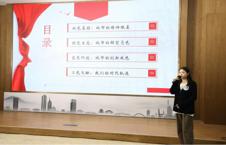 此次備賽期間,張芷晴同學(xué)始終以嚴(yán)謹(jǐn)認(rèn)真的態(tài)度投入其中,精心打磨每一個(gè)細(xì)節(jié)。學(xué)院給予全力支持,專業(yè)老師全程指導(dǎo),幫助她優(yōu)化宣講邏輯、提升表達(dá)感染力,為她的賽事之路保駕護(hù)航。站上賽場,張芷晴同學(xué)從容自信、娓娓道來,用鮮活的案例、真摯的情感,將新余的歷史底蘊(yùn)與時(shí)代風(fēng)貌生動(dòng)呈現(xiàn),既展現(xiàn)了對(duì)家鄉(xiāng)的深厚熱愛,也彰顯了經(jīng)管學(xué)子關(guān)注社會(huì)、勇于表達(dá)的青春風(fēng)采,贏得了評(píng)委與現(xiàn)場觀眾的一致認(rèn)可。