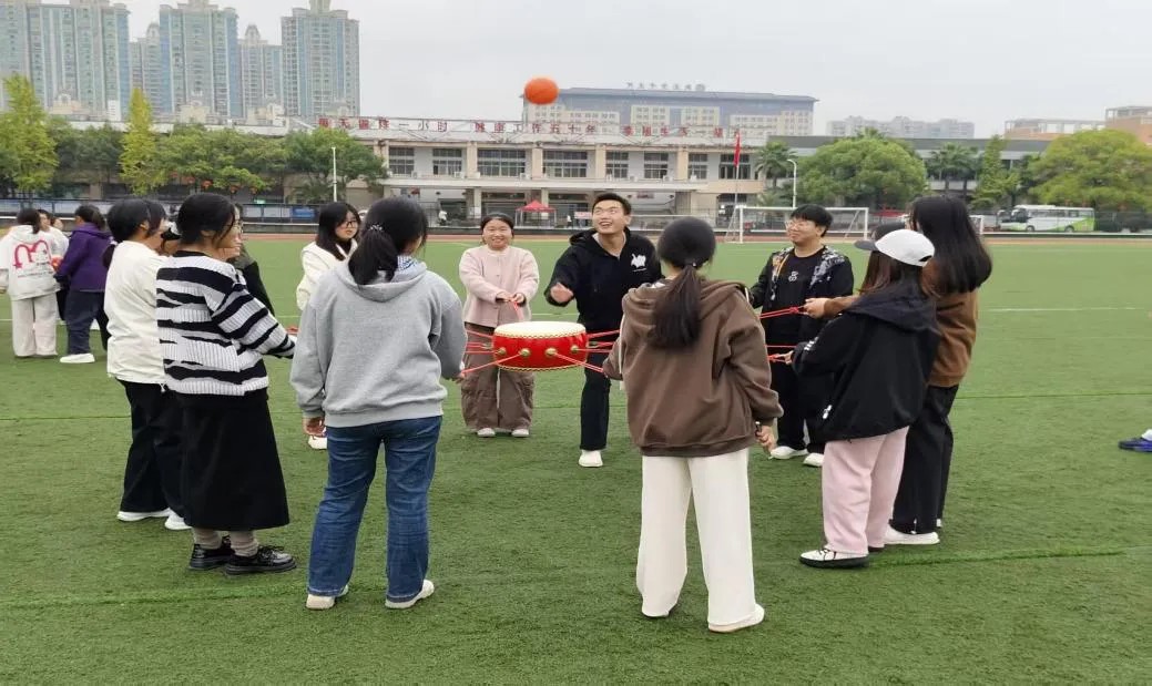 在“擊鼓顛球”環(huán)節(jié)則更加注重協(xié)作與節(jié)奏,每組12人牽繩控鼓,共同顛球,目標(biāo)不僅是創(chuàng)造紀(jì)錄,更是在每一次起落中學(xué)會包容與配合,球起球落間,團隊的凝聚力悄然升華。