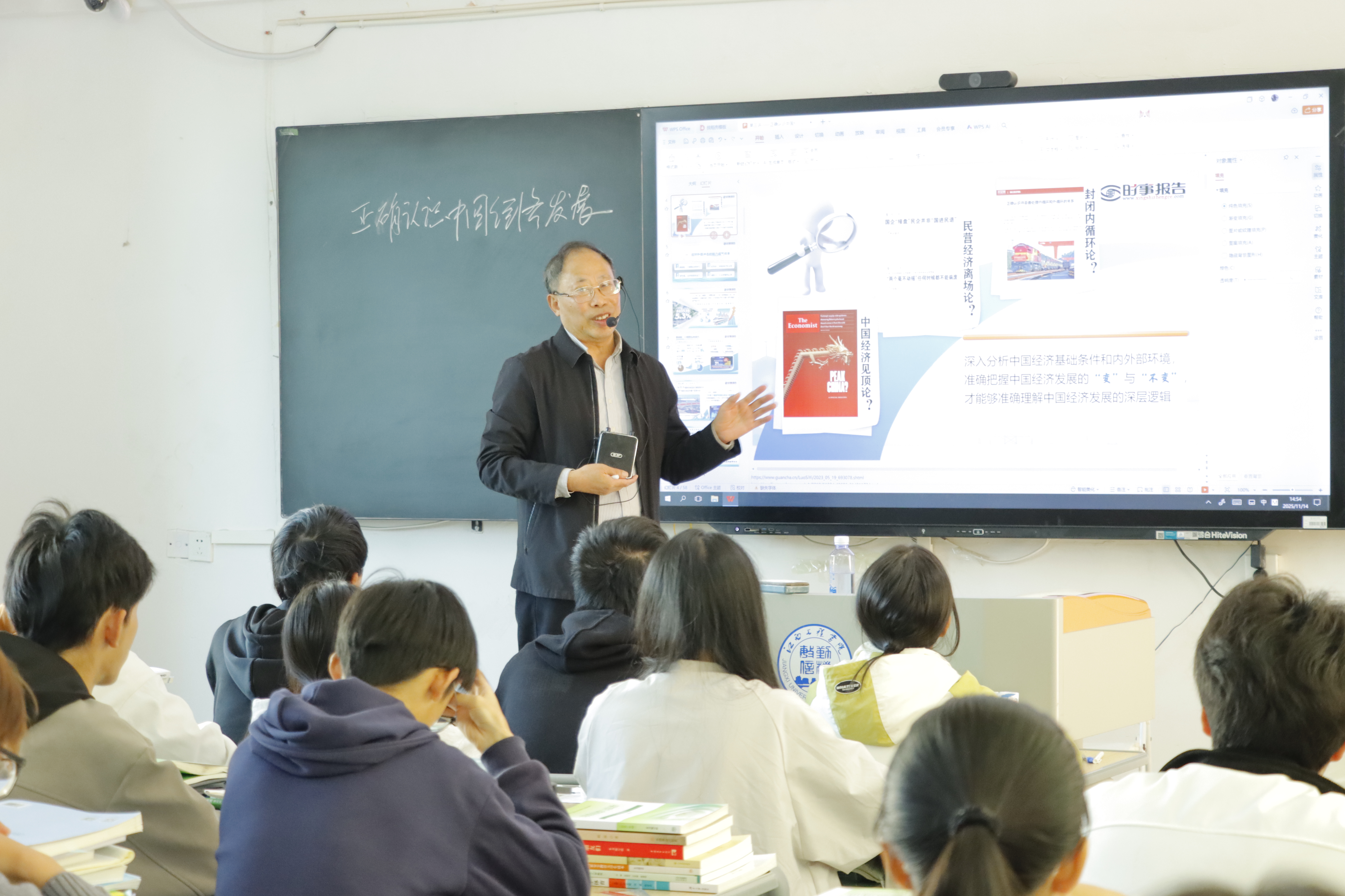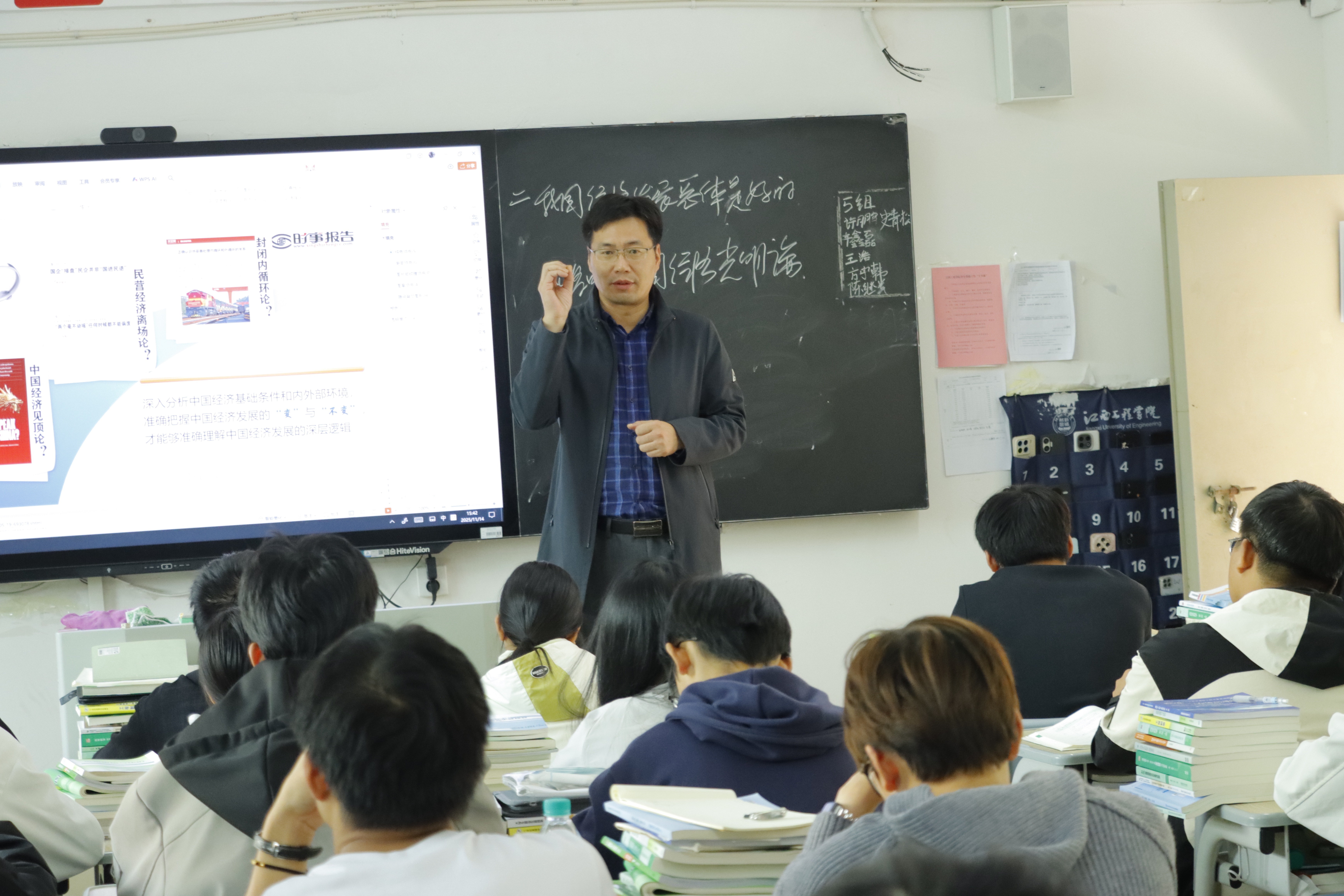 11月14日下午,馮赟走進(jìn)2025級(jí)通信工程本科1班,全程聆聽(tīng)《形勢(shì)與政策》課程。課堂上,寧世春教授圍繞“國(guó)家經(jīng)濟(jì)發(fā)展速度判斷、我國(guó)經(jīng)濟(jì)發(fā)展總體態(tài)勢(shì)及面臨的機(jī)遇挑戰(zhàn)”等核心內(nèi)容展開(kāi)講解。授課過(guò)程中,寧世春立足學(xué)生認(rèn)知特點(diǎn),堅(jiān)持以學(xué)定教,針對(duì)GDP、物價(jià)水平、就業(yè)、進(jìn)出口貿(mào)易、外匯儲(chǔ)備及“卡脖子”技術(shù)突破等重難點(diǎn)問(wèn)題,結(jié)合學(xué)生普遍關(guān)注的政策落地?zé)狳c(diǎn)靈活調(diào)整教學(xué)節(jié)奏,通過(guò)情景設(shè)問(wèn)、互動(dòng)研討等方式充分調(diào)動(dòng)學(xué)生思維主動(dòng)性,既有效活躍了課堂氛圍,更顯著增強(qiáng)了學(xué)生的學(xué)習(xí)獲得感。