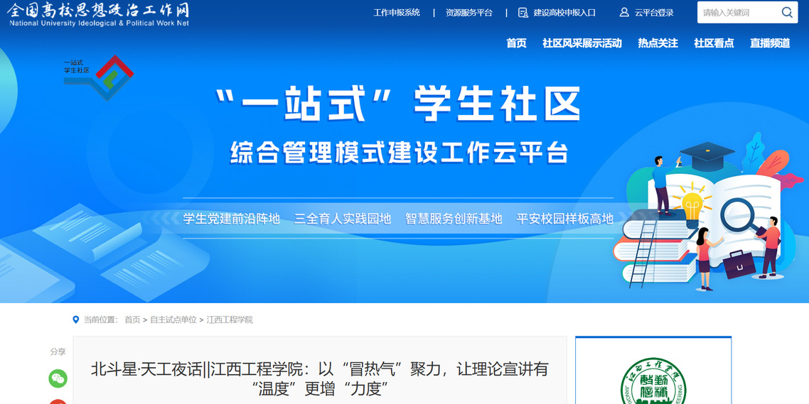 據(jù)了解,江西工程學(xué)院馬克思主義學(xué)院、校團(tuán)委、學(xué)工部等部門長期將新生思想政治教育作為重點(diǎn)工作,通過“北斗星·天工夜話”“行走的思政課”等品牌活動,推動黨的創(chuàng)新理論、社會主義核心價值觀與校園文化深度融合。后續(xù),學(xué)校還將開展“創(chuàng)新創(chuàng)業(yè)看江工”“英雄模范進(jìn)校園”等系列活動,進(jìn)一步引導(dǎo)新生樹立遠(yuǎn)大理想、激發(fā)愛國愛校熱情,讓社會主義核心價值觀成為青年成長的“定盤星”。