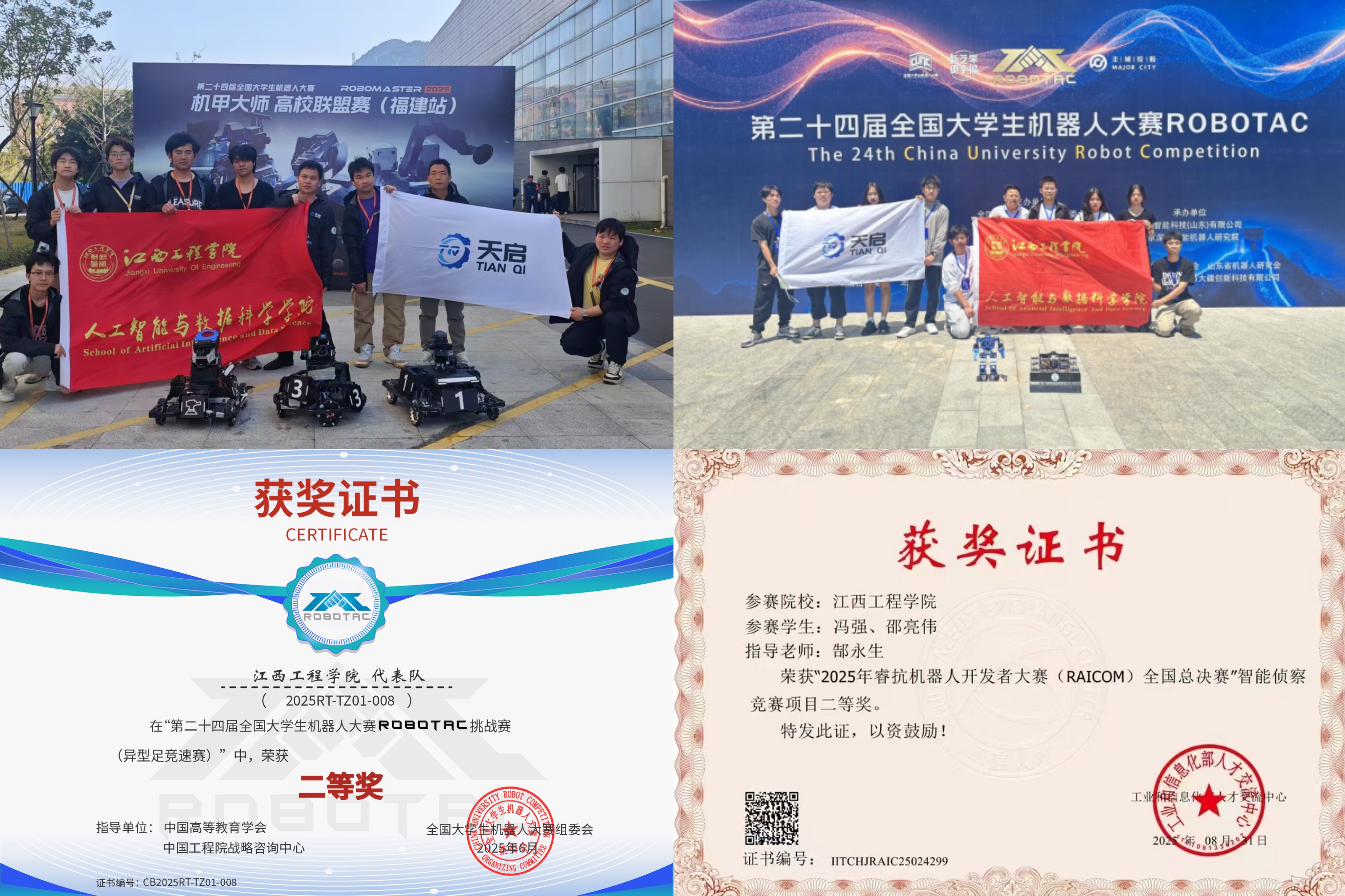 在全國大學(xué)生機(jī)器人大賽-RoboMaster機(jī)甲大師高校聯(lián)盟賽(福建站)中,江西工程學(xué)院天啟戰(zhàn)隊從34所高校的競爭中突圍,在攻克設(shè)備故障難題后斬獲兩項全國三等獎,實(shí)現(xiàn)賽事歷史性突破;第二十四屆全國大學(xué)生機(jī)器人大賽ROBOTAC賽場,面對71所高校183支戰(zhàn)隊的激烈角逐,戰(zhàn)隊拿下異形足競速賽全國二等獎及兩項全國三等獎;首次征戰(zhàn)全國??箼C(jī)器人開發(fā)者大賽(RAICOM),憑借精準(zhǔn)算法與感知技術(shù)榮獲全國二等獎;全球校園人工智能算法精英大賽中,團(tuán)隊斬獲AI+應(yīng)用創(chuàng)新等賽項省級一等獎并順利晉級國賽。上述四大賽事均為教育部A類競賽及機(jī)器人領(lǐng)域頂級賽事,江西工程學(xué)院的突破性表現(xiàn)引發(fā)行業(yè)廣泛關(guān)注。隨著具身智能等前沿領(lǐng)域的持續(xù)探索,這一人才培養(yǎng)模式將不斷迭代升級,為機(jī)器人與人工智能產(chǎn)業(yè)輸送更多兼具技術(shù)深度、實(shí)踐能力與社會責(zé)任感的應(yīng)用型人才。