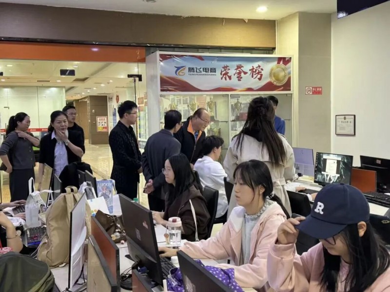 在實(shí)習(xí)現(xiàn)場(chǎng),劉新躍一行深入直播運(yùn)營(yíng)、店鋪管理、客戶服務(wù)等實(shí)習(xí)工位,細(xì)致察看學(xué)生實(shí)操情況,詳細(xì)詢問實(shí)習(xí)項(xiàng)目設(shè)計(jì)、技能目標(biāo)達(dá)成及崗位適配度等問題??吹酵瑢W(xué)們熟練運(yùn)用電商運(yùn)營(yíng)工具處理訂單、策劃直播腳本、對(duì)接客戶需求時(shí),劉新躍不時(shí)駐足點(diǎn)贊,鼓勵(lì)大家珍惜真實(shí)職場(chǎng)實(shí)習(xí)機(jī)會(huì),將理論知識(shí)轉(zhuǎn)化為實(shí)戰(zhàn)本領(lǐng),錘煉適應(yīng)行業(yè)發(fā)展的核心競(jìng)爭(zhēng)力。隨后,劉新躍一行還仔細(xì)查看了騰飛電商的實(shí)習(xí)實(shí)訓(xùn)設(shè)備配置、安全管理規(guī)范及校企雙師指導(dǎo)記錄,全面掌握實(shí)習(xí)基地運(yùn)行實(shí)際情況。