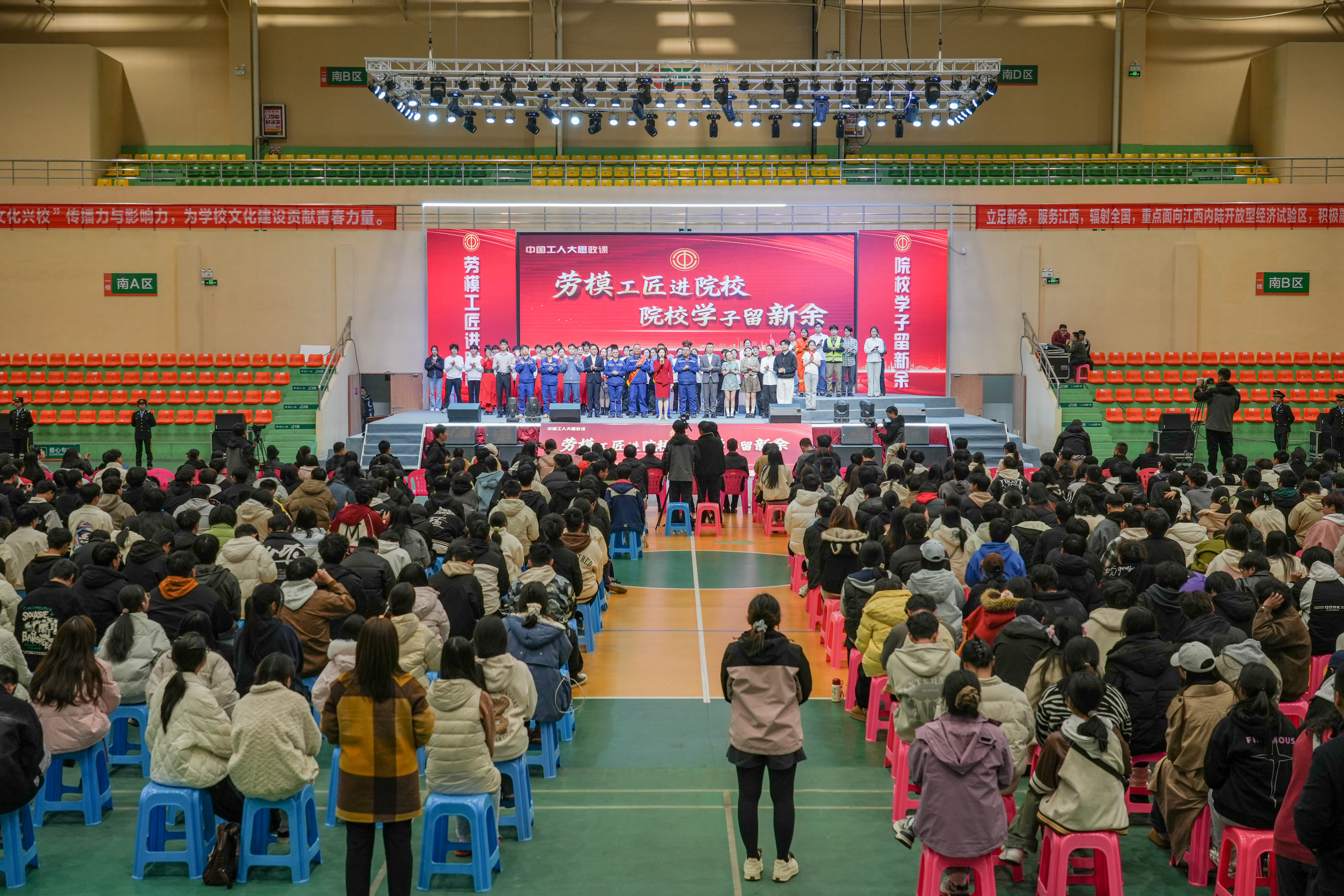 11月27日晚,一堂以“勞模工匠進院校 院校學(xué)子留新余”為主題“大思政課”在學(xué)校體育館盛大舉行。校黨委書記、督導(dǎo)專員魏建克,新余市總工會黨組書記、常務(wù)副主席胡春華,校黨委委員、理事長助理、校長助理樂俊杰,馬克思主義學(xué)直屬黨支部書記于永清、馬克思主義學(xué)院院長王勇、工會主席劉志英等領(lǐng)導(dǎo)出席活動。勞模代表及院校師生近1000人共同參與了這場思政盛宴。