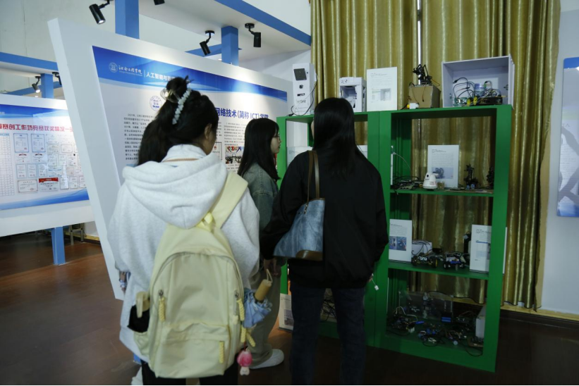 在仙女湖校區(qū),同學(xué)們依次走訪校企合作基地、工業(yè)4.0實訓(xùn)中心、華為ICT產(chǎn)業(yè)學(xué)院、智能制造產(chǎn)業(yè)學(xué)院及電子實訓(xùn)中心,通過現(xiàn)場觀摩智能生產(chǎn)線、5G技術(shù)應(yīng)用場景及教學(xué)成果展,直觀感受學(xué)校的辦學(xué)特色。在立德園,一幅幅歷史照片、一件件實物展品,生動再現(xiàn)了學(xué)校四十多年來的發(fā)展歷程,學(xué)生們駐足細(xì)觀,深刻領(lǐng)悟“勤樸敏信”校訓(xùn)的精神內(nèi)涵和校園德育文化。在教學(xué)成果展廳里,同學(xué)們仔細(xì)觀摩學(xué)校在實踐教學(xué)與科研創(chuàng)新領(lǐng)域所斬獲的豐碩成果。這一直觀的體驗,使同學(xué)們對學(xué)校的辦學(xué)理念以及人才培養(yǎng)模式形成了更為深刻、透徹的認(rèn)識。