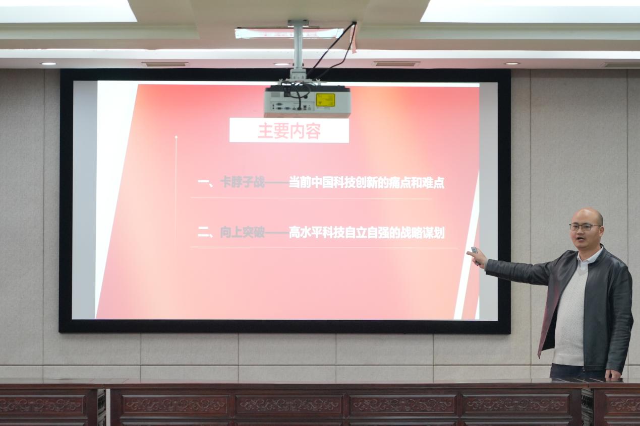 徐國民作專題輔導(dǎo)報告,他圍繞準(zhǔn)確把握社會主義現(xiàn)代化發(fā)展目標(biāo)的邏輯進程、“十五五”期間經(jīng)濟發(fā)展中的五個新趨勢和社會發(fā)展中的四個新走向展示了黨的二十屆四中全會精神融入思政課的教學(xué)示范。報告從理論視角、時代背景、對照比較三個維度深入解讀了黨的二十屆四中全會精神,詳細闡述了黨的二十屆四中全會精神融入《習(xí)近平新時代中國特色社會主義思想概論》課程的核心要點與教學(xué)方法。他強調(diào)要注重教材語言向教學(xué)語言轉(zhuǎn)化,以學(xué)生價值評判能力和思維能力提升為導(dǎo)向,增強思政課的理論深度與實踐溫度。