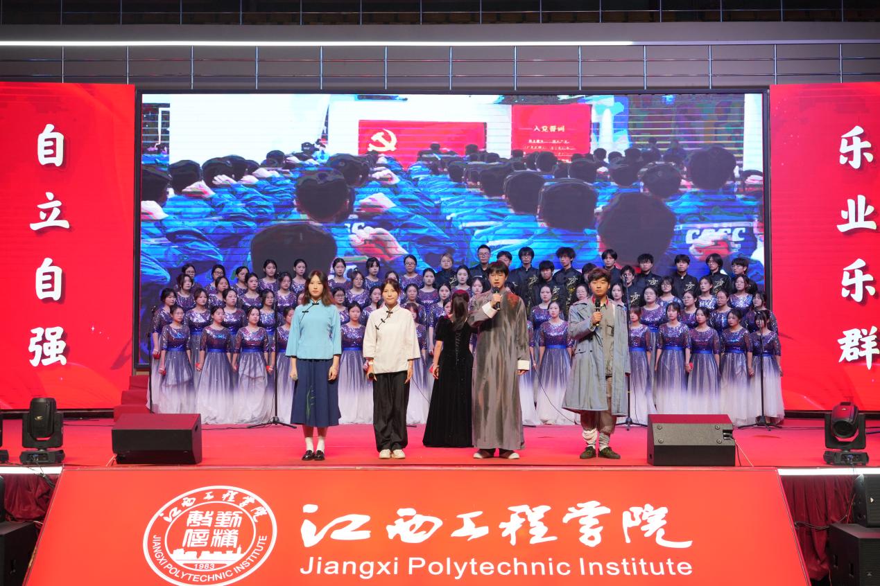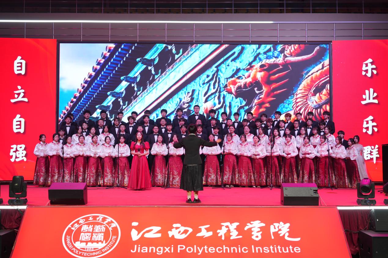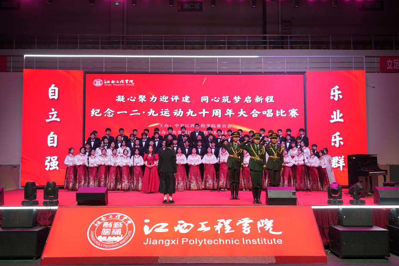 來(lái)自7個(gè)學(xué)院師生依次登臺(tái),用飽滿的熱情和激昂的歌聲,將現(xiàn)場(chǎng)觀眾的思緒帶回到九十年前那段風(fēng)雨如晦的歲月?!段覀冏咴诖舐飞稀贰洞笾袊?guó)》等一首首鐫刻著時(shí)代印記的經(jīng)典曲目,唱出了當(dāng)年愛(ài)國(guó)學(xué)子對(duì)民族存亡的吶喊與抗?fàn)?;而《萬(wàn)疆》《如愿》等新時(shí)代的主旋律,則深情抒發(fā)了江工青年對(duì)黨、對(duì)祖國(guó)、對(duì)人民的赤誠(chéng)與熱愛(ài)。各參賽隊(duì)伍在演唱中融入了誦讀紅色家書(shū)、舞蹈、情景表演等多種藝術(shù)形式,為經(jīng)典作品注入了嶄新的時(shí)代內(nèi)涵,讓“一二·九”精神在沉浸式美育思政實(shí)踐中跨越時(shí)空、薪火相傳。