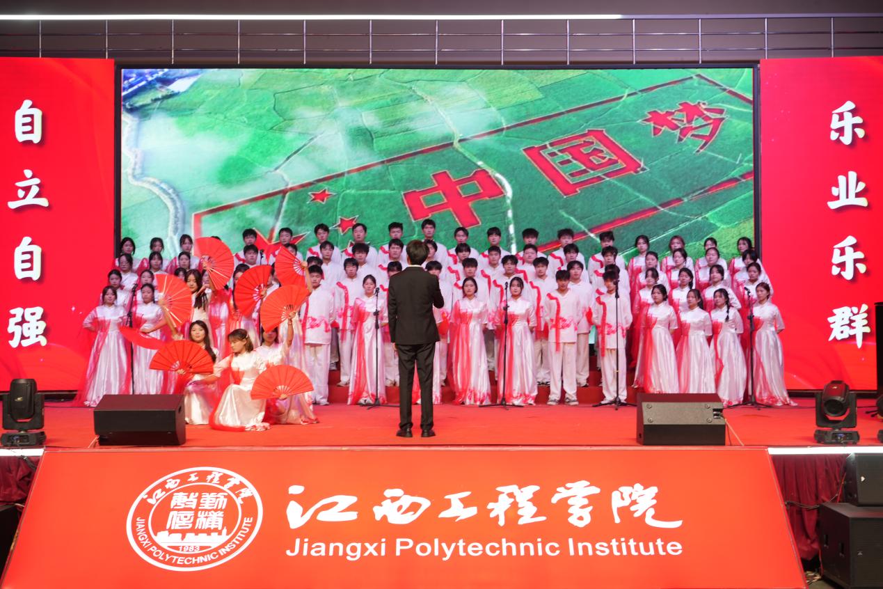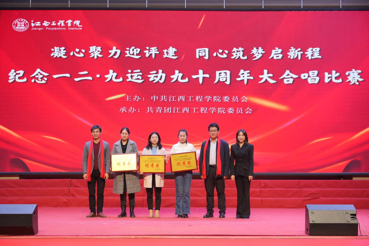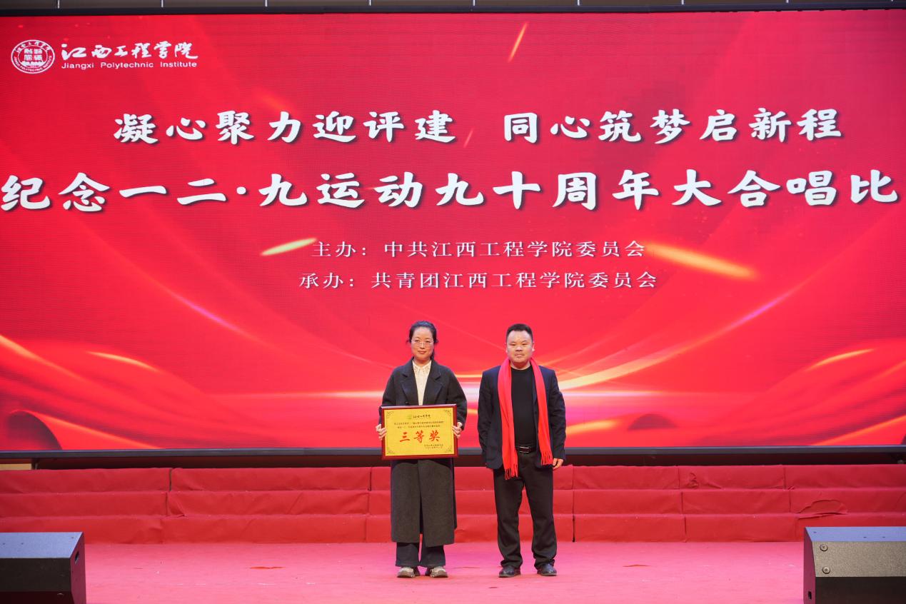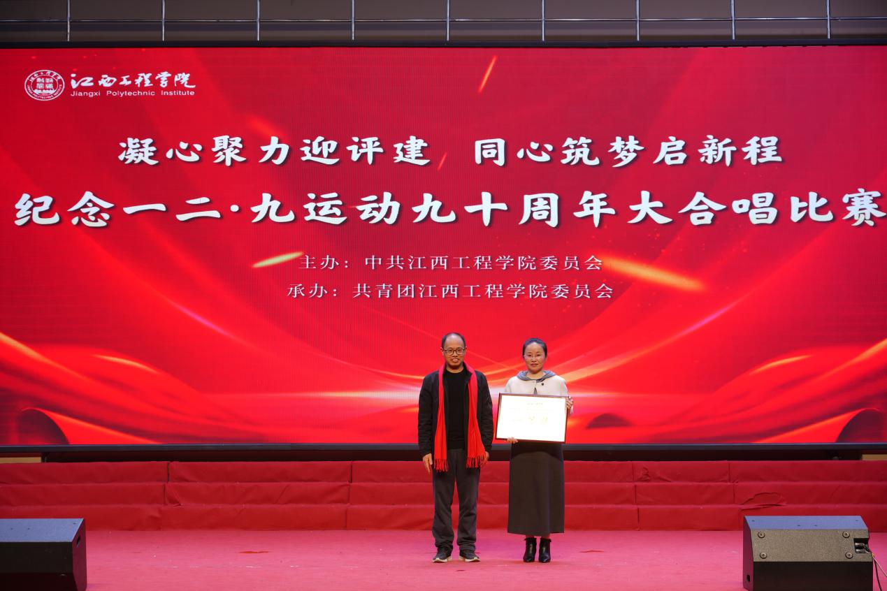 來(lái)自7個(gè)學(xué)院師生依次登臺(tái),用飽滿的熱情和激昂的歌聲,將現(xiàn)場(chǎng)觀眾的思緒帶回到九十年前那段風(fēng)雨如晦的歲月?!段覀冏咴诖舐飞稀贰洞笾袊?guó)》等一首首鐫刻著時(shí)代印記的經(jīng)典曲目,唱出了當(dāng)年愛(ài)國(guó)學(xué)子對(duì)民族存亡的吶喊與抗?fàn)?;而《萬(wàn)疆》《如愿》等新時(shí)代的主旋律,則深情抒發(fā)了江工青年對(duì)黨、對(duì)祖國(guó)、對(duì)人民的赤誠(chéng)與熱愛(ài)。各參賽隊(duì)伍在演唱中融入了誦讀紅色家書(shū)、舞蹈、情景表演等多種藝術(shù)形式,為經(jīng)典作品注入了嶄新的時(shí)代內(nèi)涵,讓“一二·九”精神在沉浸式美育思政實(shí)踐中跨越時(shí)空、薪火相傳。