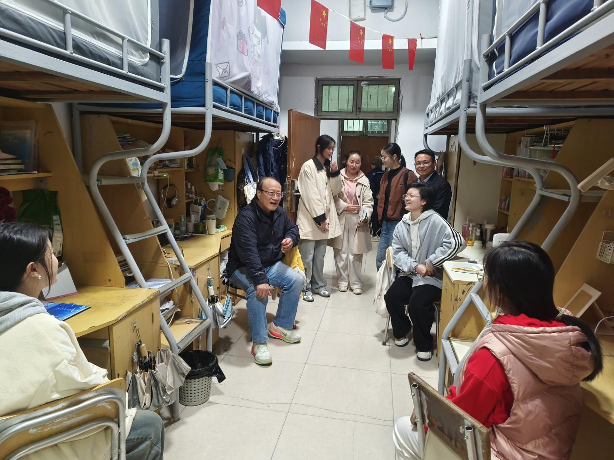 在宿舍聯(lián)系中,劉新躍實(shí)地察看14棟學(xué)生住宿環(huán)境,詳細(xì)詢問(wèn)同學(xué)們思想學(xué)習(xí)生活狀況,認(rèn)真征集對(duì)宿舍條件、后勤保障等工作的意見(jiàn)建議。在14棟D214宿舍,他與學(xué)生暢談家鄉(xiāng)變化、分享假期見(jiàn)聞,細(xì)致了解大家的階段性目標(biāo)規(guī)劃,勉勵(lì)同學(xué)們珍惜學(xué)習(xí)時(shí)光,與室友互幫互助、和諧相處,以飽滿熱情投入學(xué)習(xí)生活,實(shí)現(xiàn)自我提升。