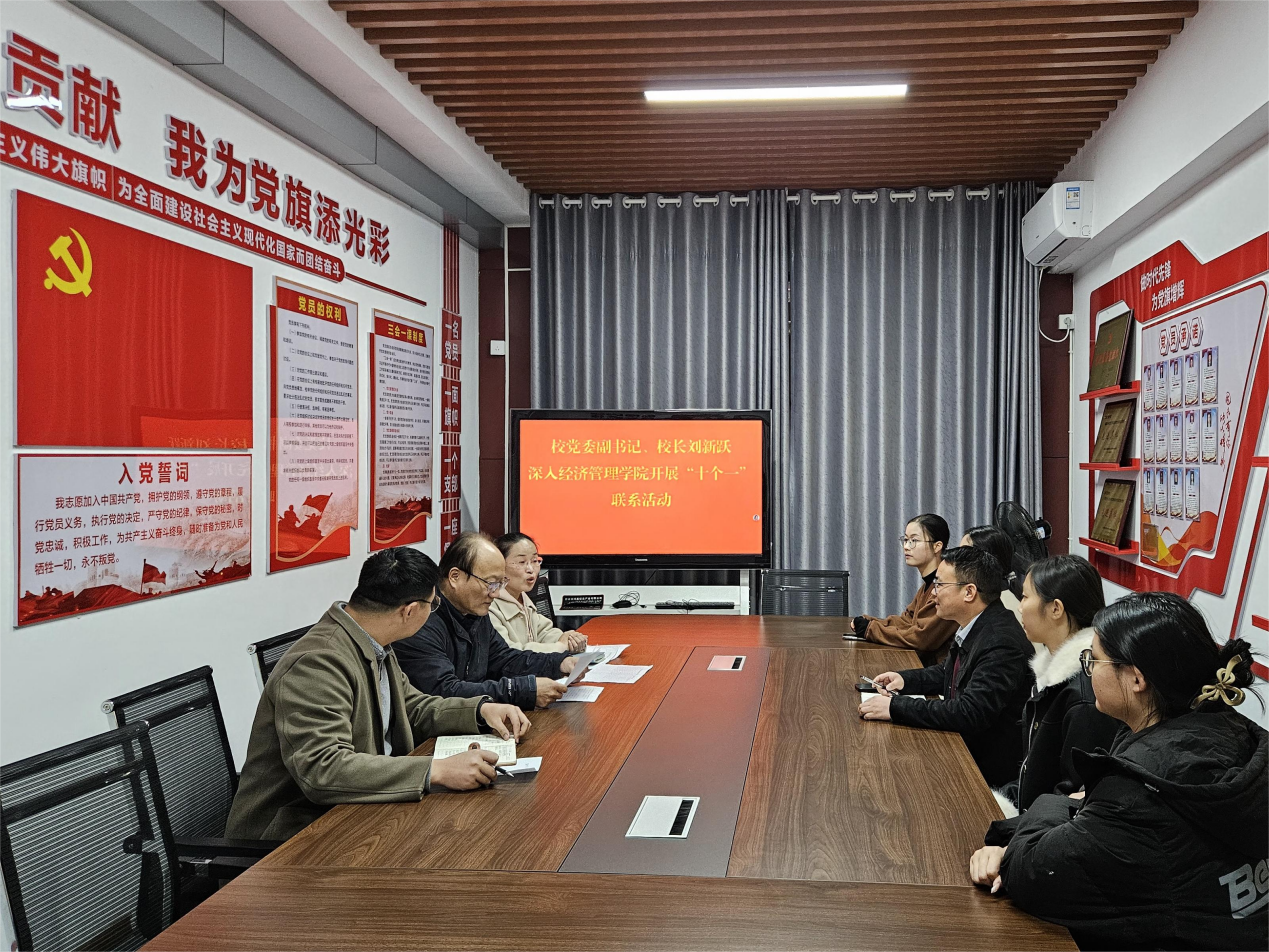 為進(jìn)一步拓展聯(lián)系師生途徑、暢通訴求表達(dá)渠道、精準(zhǔn)掌握學(xué)院發(fā)展動(dòng)態(tài),推動(dòng)經(jīng)濟(jì)管理學(xué)院實(shí)現(xiàn)高質(zhì)量?jī)?nèi)涵式發(fā)展,自2025年以來(lái),校黨委副書(shū)記、校長(zhǎng)劉新躍多次深入經(jīng)濟(jì)管理學(xué)院,通過(guò)“十個(gè)一”聯(lián)系活動(dòng)摸清基層實(shí)情、破解發(fā)展難題,為學(xué)院發(fā)展注入強(qiáng)勁動(dòng)力。