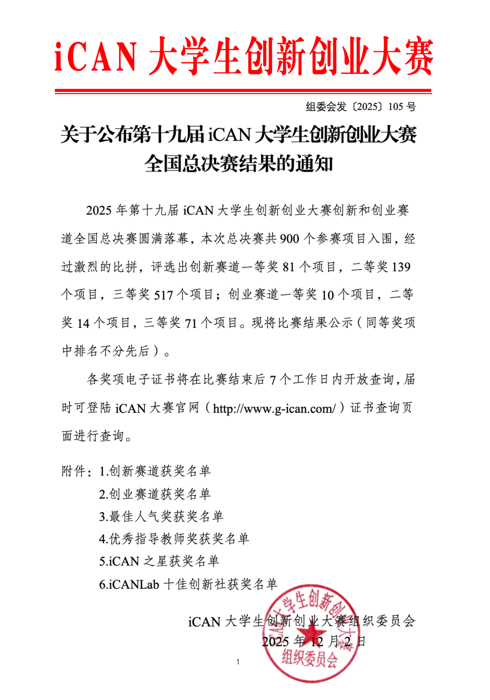 近日,2025年第十九屆iCAN大學生創(chuàng)新創(chuàng)業(yè)大賽全國總決賽在杭州市蕭山區(qū)錢江世紀城杭州國際博覽中心圓滿落下帷幕。經(jīng)過激烈角逐,由江西工程學院曾睿同學領銜的“脈旋科技”團隊斬獲全國總決賽創(chuàng)新賽道三等獎。