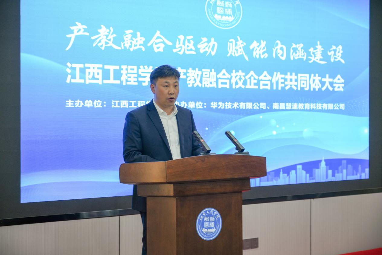 在企業(yè)代表發(fā)言環(huán)節(jié),六位來自不同行業(yè)的企業(yè)負(fù)責(zé)人結(jié)合自身發(fā)展實際,分享合作經(jīng)驗、表達(dá)合作期待。中國移動通信集團(tuán)江西有限公司新余分公司總經(jīng)理黃瑋表示,公司正深入推進(jìn)數(shù)字化轉(zhuǎn)型,急需復(fù)合型信息人才,期待與學(xué)校在5G+、物聯(lián)網(wǎng)、大數(shù)據(jù)等領(lǐng)域開展定向培養(yǎng)與項目研發(fā);新余市數(shù)字產(chǎn)業(yè)投資發(fā)展有限公司黨委委員、副總經(jīng)理張小紅介紹了公司在智慧城市、數(shù)字政務(wù)領(lǐng)域的布局,希望與學(xué)校共建實訓(xùn)基地,深化數(shù)據(jù)治理與人工智能應(yīng)用合作;華為技術(shù)有限公司江西政企服務(wù)部部長徐洪國強調(diào)了生態(tài)合作的重要性,提出將在師資培訓(xùn)、認(rèn)證體系、競賽支持等方面給予學(xué)校資源傾斜。