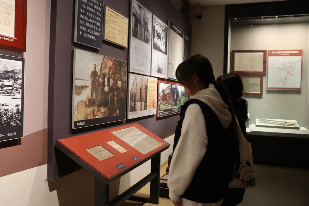 在羅坊會(huì)議歷史陳列區(qū),學(xué)生們通過(guò)會(huì)議復(fù)原場(chǎng)景和珍貴文獻(xiàn)資料,深入了解這一會(huì)議的重大歷史意義。展柜中紅軍使用過(guò)的武器裝備、會(huì)議決議文件等珍貴文物,生動(dòng)再現(xiàn)了革命先輩在關(guān)鍵時(shí)刻的英明決策。在“興國(guó)調(diào)查”專題展區(qū),毛澤東同志深入基層調(diào)查研究的事跡讓學(xué)生們深刻體會(huì)到中國(guó)共產(chǎn)黨人求真務(wù)實(shí)、密切聯(lián)系群眾的優(yōu)良作風(fēng)。![]()
