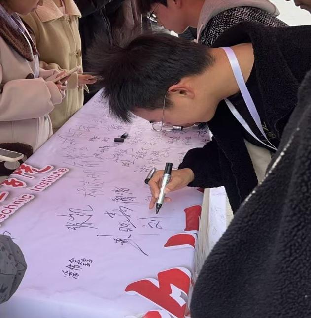 中午時(shí)分,校團(tuán)委學(xué)生會(huì)組織的國家公祭日簽名活動(dòng)在校園內(nèi)正式拉開帷幕。印有“銘記歷史 捍衛(wèi)和平”的巨型橫幅在新食堂門口場(chǎng)地上格外醒目,吸引了大批同學(xué)駐足參與。大家手持簽字筆,鄭重地在橫幅上寫下自己的姓名,落筆的瞬間,既是對(duì)南京大屠殺中遇難同胞的深切追思,也是對(duì)“以史為鑒、珍惜和平”的莊嚴(yán)承諾。一筆一畫間,盡顯江工青年對(duì)歷史的敬畏、對(duì)和平的珍視,更讓人深切感受到年輕一代“不忘國恥、振興中華”的責(zé)任與擔(dān)當(dāng)。