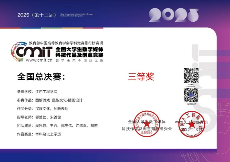近日,2025年(第十三屆)全國大學(xué)生數(shù)字媒體科技作品及創(chuàng)意競賽全國現(xiàn)場總決賽圓滿落幕,本屆競賽吸引了來自國內(nèi)外的1900余支隊(duì)伍、4800余名師生同臺競技。經(jīng)過激烈角逐,我校人工智能與數(shù)據(jù)科學(xué)學(xué)院參賽團(tuán)隊(duì)表現(xiàn)優(yōu)異,榮獲全國一等獎1項(xiàng)、全國三等獎2項(xiàng)。