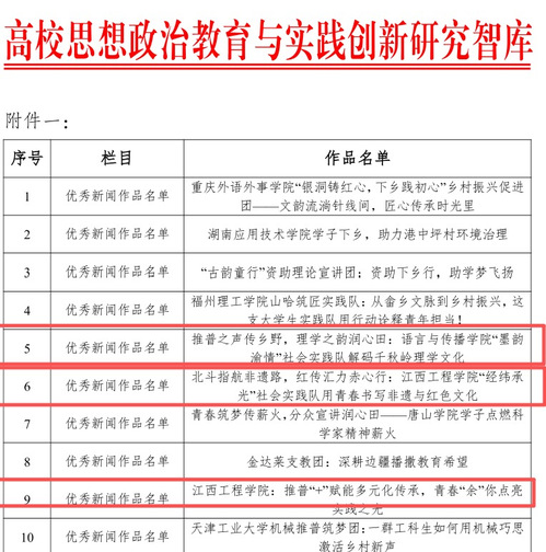 在優(yōu)秀新聞作品評選中,張艷、占順霞老師指導(dǎo)的《推普+賦能多元化傳承》新聞作品榜上有名;來燕、孫雯老師指導(dǎo)團隊“經(jīng)緯承光”社會實踐隊斬獲殊榮。這些新聞作品以文字為媒,生動記錄了實踐隊深入鄉(xiāng)村一線開展文化傳播、推普助力、志愿服務(wù)的點滴歷程,傳遞了青年學(xué)子扎根基層、服務(wù)鄉(xiāng)村的青春擔(dān)當(dāng),展現(xiàn)了我校思政實踐教育的生動實踐。