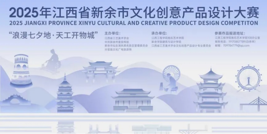 江西省新余市文創(chuàng)產(chǎn)品設(shè)計(jì)大賽是由江西工藝美術(shù)學(xué)會(huì)指導(dǎo),中共新余市委宣傳部、新余市仙女湖風(fēng)景名勝區(qū)管委會(huì)主辦,江西工程學(xué)院抱石藝術(shù)學(xué)院承辦的全省性賽事。旨在挖掘新余優(yōu)勢(shì)地方文化資源,匯聚優(yōu)秀創(chuàng)意設(shè)計(jì)力量,激發(fā)文化創(chuàng)新創(chuàng)造活力的賽事。