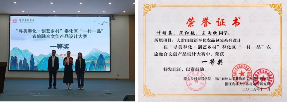 【2】抱石藝術(shù)學(xué)院師生作品獲奉化區(qū)“一村一品”農(nóng)旅融合產(chǎn)品設(shè)計(jì)大賽一等獎(jiǎng)