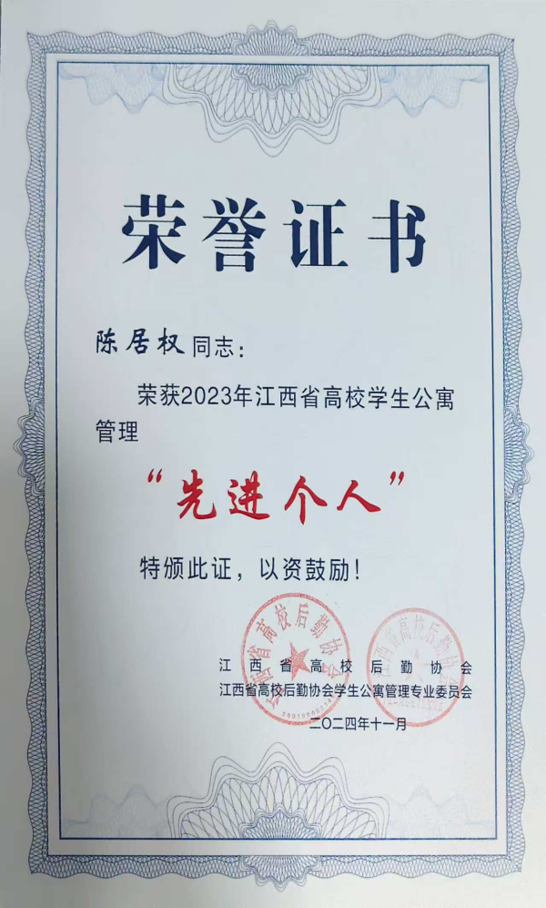 2025年,學(xué)?!耙徽臼健睂W(xué)生社區(qū)建設(shè)工作持續(xù)深耕、碩果盈枝。2025年12月,江西省高校學(xué)生公寓管理專業(yè)委員會2025年年會暨學(xué)生公寓管理規(guī)范化建設(shè)推進會在贛州召開,學(xué)校連續(xù)獲評2023、2024年度江西省高校學(xué)生公寓管理“先進單位”稱號,陳居權(quán)、朱鵬飛等同志獲評“先進個人”。省級榮譽的連續(xù)獲得,不僅是對學(xué)?!耙徽臼健睂W(xué)生社區(qū)管理服務(wù)工作的高度認(rèn)可,更印證了學(xué)?!耙徽臼健睂W(xué)生社區(qū)育人工作的深厚成效。