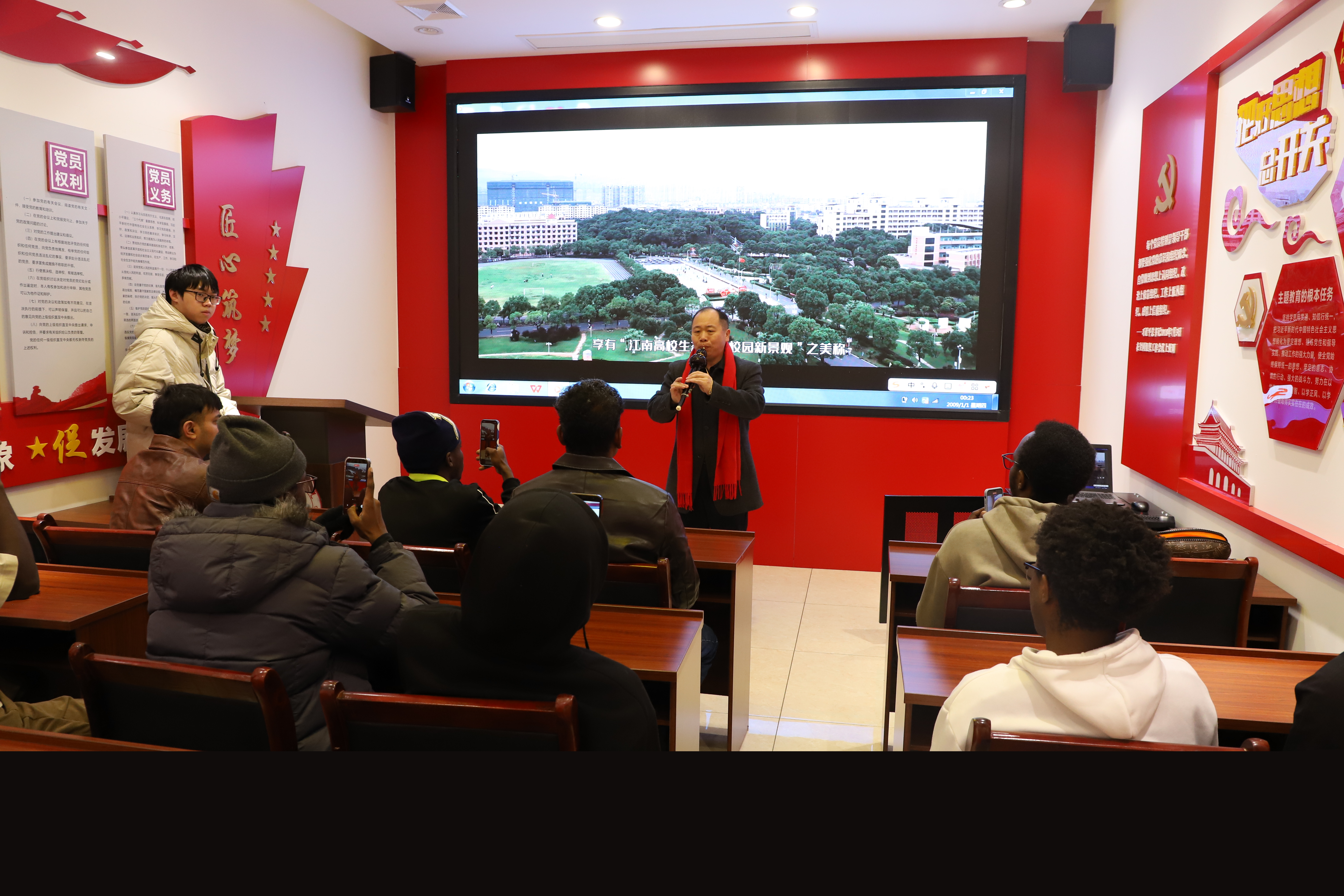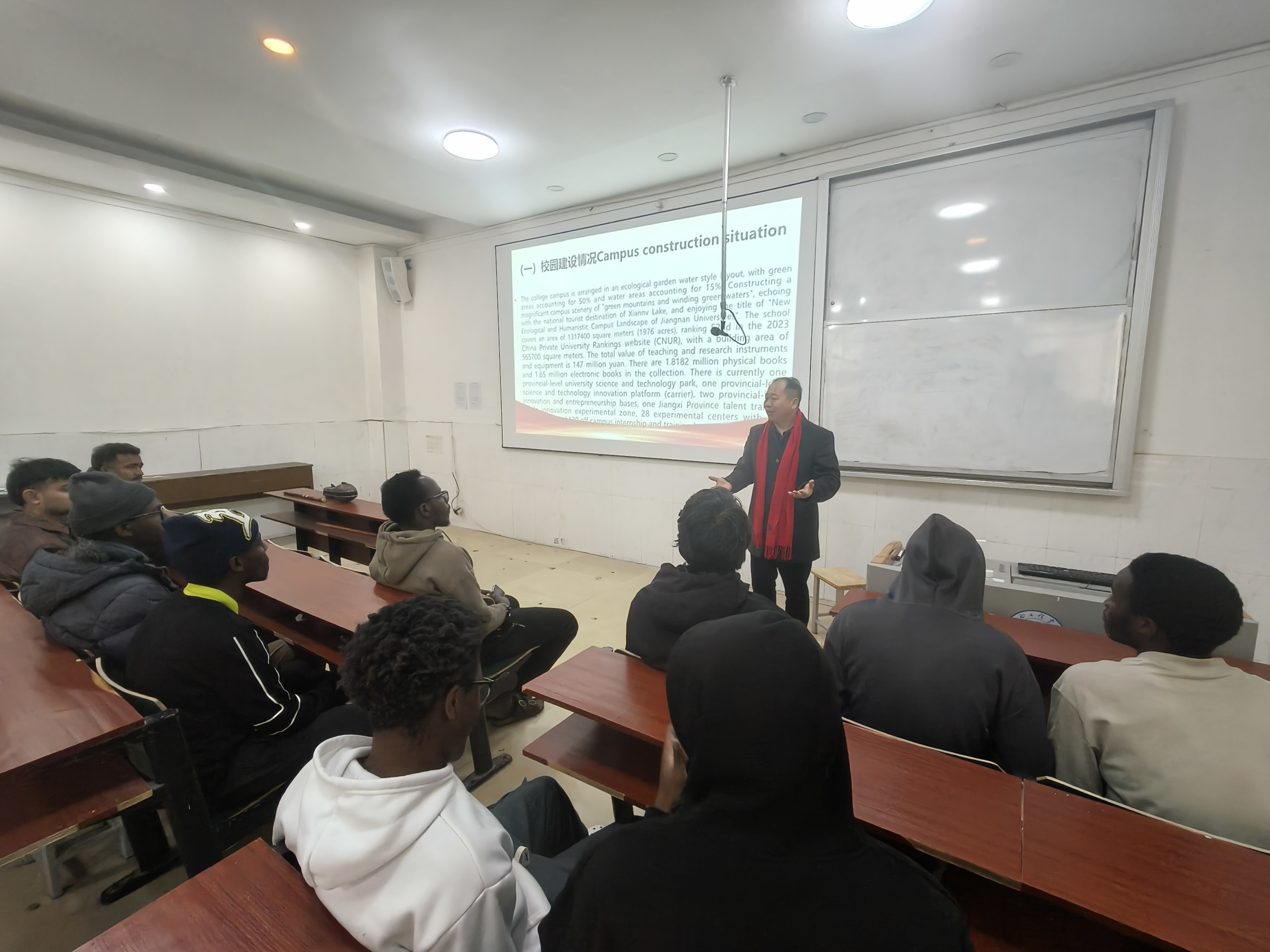 為幫助來(lái)華留學(xué)生深入了解學(xué)校辦學(xué)底蘊(yùn)與新余地方特色,增強(qiáng)國(guó)際學(xué)生對(duì)學(xué)校和城市的歸屬感、認(rèn)同感,2月2日,江西工程學(xué)院黨委委員、宣傳部部長(zhǎng)兼馬克思主義學(xué)院直屬黨支部書記于永清為寒假在校的外國(guó)留學(xué)生開展“講好江工故事,感悟創(chuàng)新創(chuàng)業(yè)精神”校史校情教育活動(dòng)。語(yǔ)言與傳播學(xué)院(國(guó)際教育學(xué)院)、國(guó)際合作與交流處教師文思琪、郭子良全程參與,通過(guò)系列沉浸式體驗(yàn),邂逅江工四十余載辦學(xué)積淀與新余天工文化魅力,開啟跨文化交流新旅程。