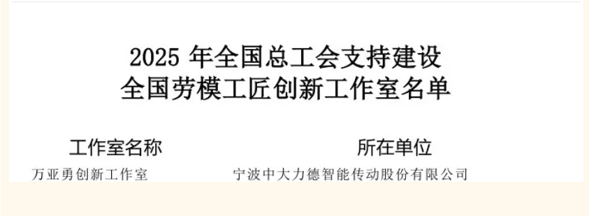 2025年12月,中華全國(guó)總工會(huì)辦公廳正式公布2025年全國(guó)勞模工匠創(chuàng)新工作室支持建設(shè)名單,寧波中大力德智能傳動(dòng)股份有限公司“萬(wàn)亞勇勞模工匠創(chuàng)新工作室”憑借深厚的技術(shù)積淀與突出的創(chuàng)新成果成功入選,獲國(guó)家級(jí)專項(xiàng)支持!工作室領(lǐng)銜人萬(wàn)亞勇系江西工程學(xué)院杰出校友,這一榮譽(yù)既是對(duì)其個(gè)人工匠精神的高度認(rèn)可,更是江西工程學(xué)院“勤樸敏信”校訓(xùn)育人成效的生動(dòng)彰顯。