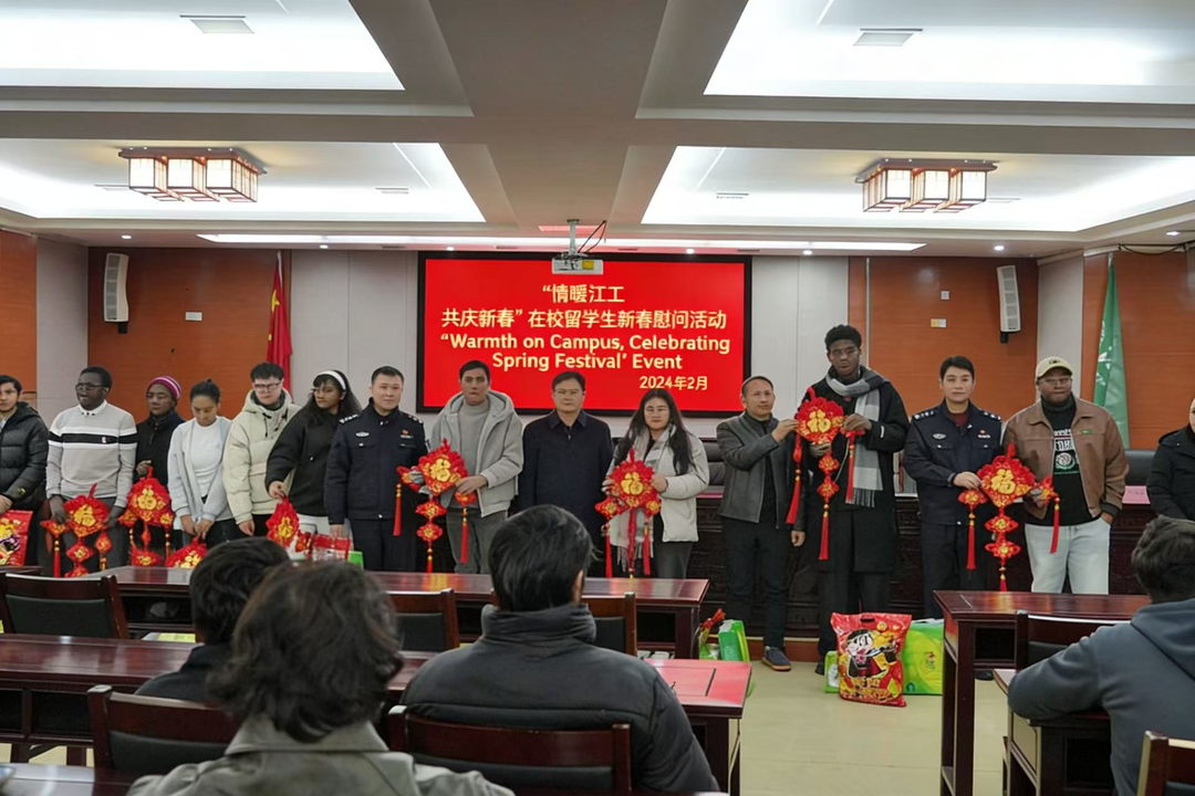江西新聞客戶(hù)端訊(文思琪)歲末冬寒,年味漸濃。2月11日上午,江西工程學(xué)院天工校區(qū)行政樓三樓會(huì)議室內(nèi)暖意融融,“情暖江工共慶新春”在校留學(xué)生新春慰問(wèn)活動(dòng)如期舉行。江西工程學(xué)院黨委書(shū)記、督導(dǎo)專(zhuān)員魏建克,黨委委員、校長(zhǎng)助理陶小兵,黨委委員、宣傳部部長(zhǎng)于永清,渝水區(qū)出入境大隊(duì)及天工派出所民警代表,黨辦、國(guó)際合作與交流處及國(guó)際教育學(xué)院等相關(guān)負(fù)責(zé)人與來(lái)自36個(gè)國(guó)家的留校留學(xué)生代表歡聚一堂,共賀新春佳節(jié),共話(huà)文化情誼。