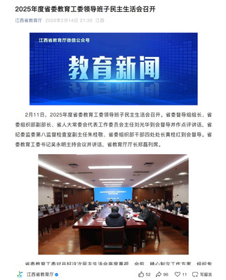2月11日,2025年度省委教育工委領(lǐng)導(dǎo)班子民主生活會(huì)召開。省委督導(dǎo)組組長(zhǎng)、省委組織部副部長(zhǎng)、省人大常委會(huì)代表工作委員會(huì)主任劉光華到會(huì)督導(dǎo)并作點(diǎn)評(píng)講話,省紀(jì)委監(jiān)委第八監(jiān)督檢查室副主任朱桂敬、省委組織部干部四處處長(zhǎng)黃桂紅到會(huì)督導(dǎo)。省委教育工委書記吳永明主持會(huì)議并講話,省教育廳廳長(zhǎng)鄭磊列席。