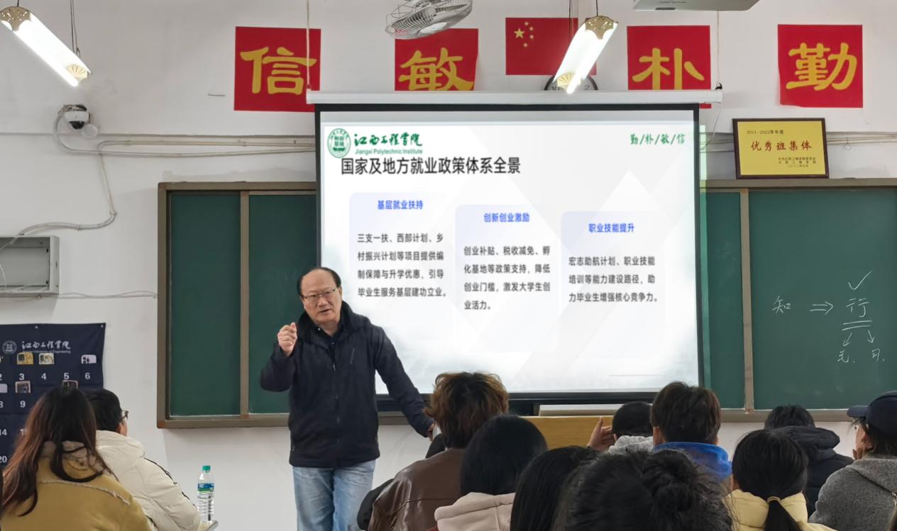 劉新躍首先闡述了當(dāng)前就業(yè)工作的時代背景與戰(zhàn)略意義。他強(qiáng)調(diào),黨中央、國務(wù)院始終將高校畢業(yè)生就業(yè)擺在突出位置,推出一系列有力政策,為同學(xué)們成長成才、就業(yè)創(chuàng)業(yè)營造了良好環(huán)境。他結(jié)合宏觀經(jīng)濟(jì)形勢、行業(yè)發(fā)展動態(tài)與個人治學(xué)從教經(jīng)歷,圍繞專業(yè)定位、職業(yè)前景、就業(yè)現(xiàn)狀等維度進(jìn)行了深入淺出的講解,引導(dǎo)同學(xué)們樹立正確的擇業(yè)觀、事業(yè)觀,科學(xué)規(guī)劃大學(xué)生涯,著力夯實(shí)專業(yè)基礎(chǔ),培育核心競爭能力,不斷提升自身在就業(yè)市場中的適應(yīng)力與競爭力。