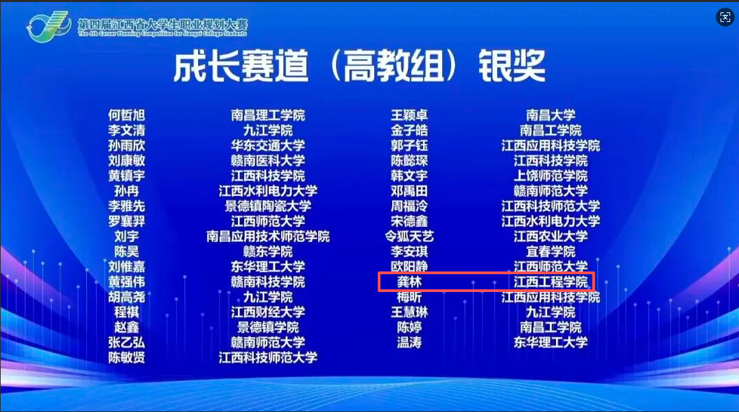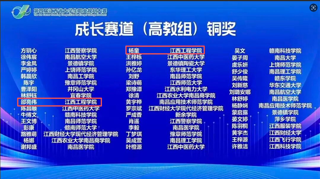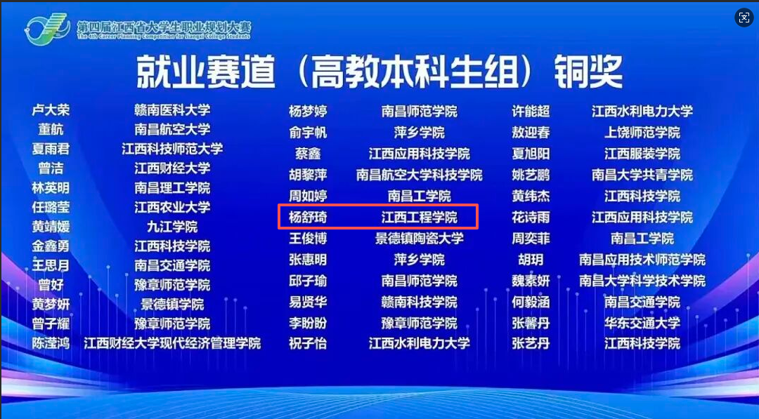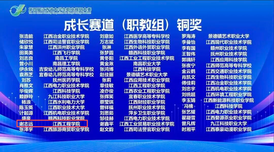 本次大賽取得的優(yōu)異成績,是江西工程學(xué)院長期推進就業(yè)育人工作、強化大學(xué)生生涯教育的成果體現(xiàn)。學(xué)校歷來高度重視大學(xué)生生涯教育與就業(yè)指導(dǎo)工作,積極構(gòu)建以職業(yè)規(guī)劃大賽為引領(lǐng)、以課堂教學(xué)為基礎(chǔ)、以實踐活動為支撐的全程化職業(yè)指導(dǎo)體系。學(xué)校將以此次大賽為契機深化“課賽融通”教學(xué)改革,將大賽標(biāo)準(zhǔn)融入就業(yè)指導(dǎo)課程,將生涯教育貫穿整個人才培養(yǎng)全過程,幫助更多江工學(xué)子明晰職業(yè)發(fā)展路徑,提升就業(yè)競爭力,實現(xiàn)高質(zhì)量充分就業(yè),為服務(wù)地方經(jīng)濟社會發(fā)展培養(yǎng)更多高素質(zhì)應(yīng)用型人才。