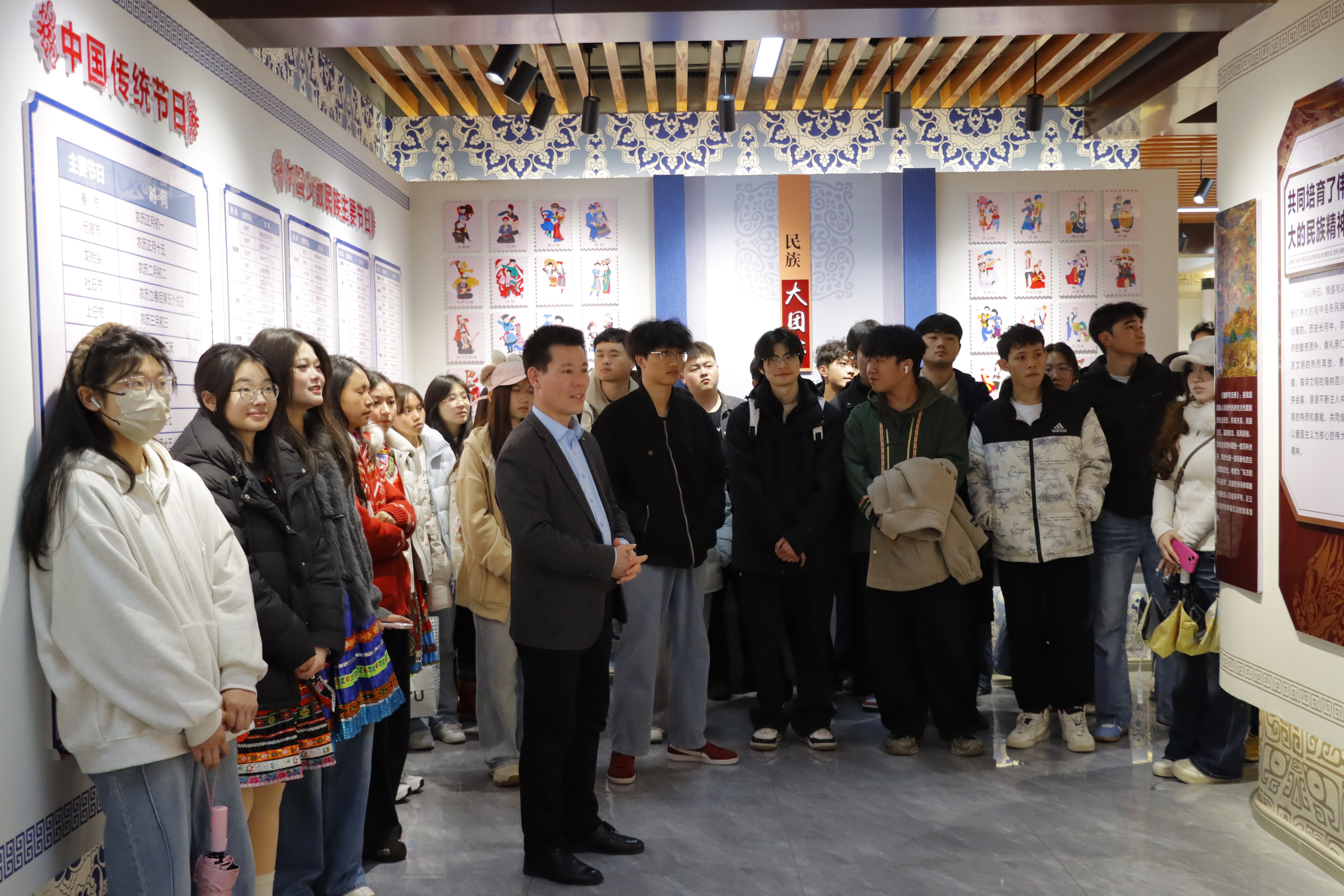 活動(dòng)首站,師生代表走進(jìn)我校仙女湖校區(qū)鑄牢中華民族共同體意識(shí)主題展示館。館內(nèi)豐富的圖文資料、生動(dòng)的多媒體互動(dòng)、實(shí)物陳列,系統(tǒng)展現(xiàn)了中華民族多元一體的歷史脈絡(luò)、各民族共同奮斗的光輝歷程以及新時(shí)代民族團(tuán)結(jié)進(jìn)步事業(yè)的豐碩成果。師生們認(rèn)真聆聽(tīng)講解,不時(shí)駐足凝視、交流探討,深刻領(lǐng)會(huì)“中華民族共同體意識(shí)是民族團(tuán)結(jié)之本”的核心要義?;顒?dòng)期間,來(lái)自不同民族的學(xué)生代表主動(dòng)分享本民族的傳統(tǒng)文化與風(fēng)俗習(xí)慣,現(xiàn)場(chǎng)氛圍熱烈融洽,有效增進(jìn)了各民族師生之間的了解與認(rèn)同。