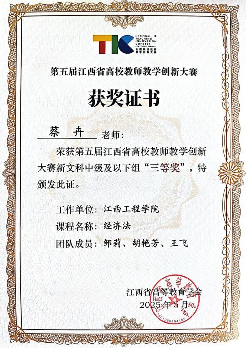 [11]第五屆江西省教學(xué)創(chuàng)新大賽獲新文科賽道講師及以下組三等獎(jiǎng),2025年5月;